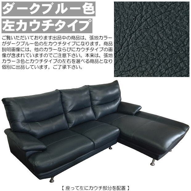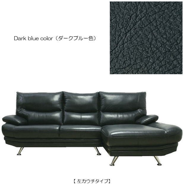 | 【商品名】 | オイル仕上げ本革張スタンダードモダン3人掛ハイバックカウチソファー (ダークブルー色・左カウチタイプ) |