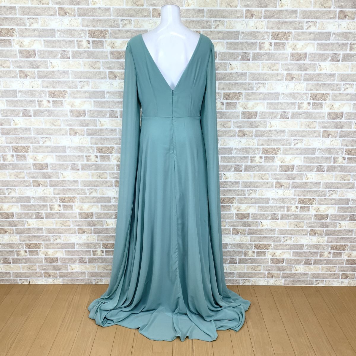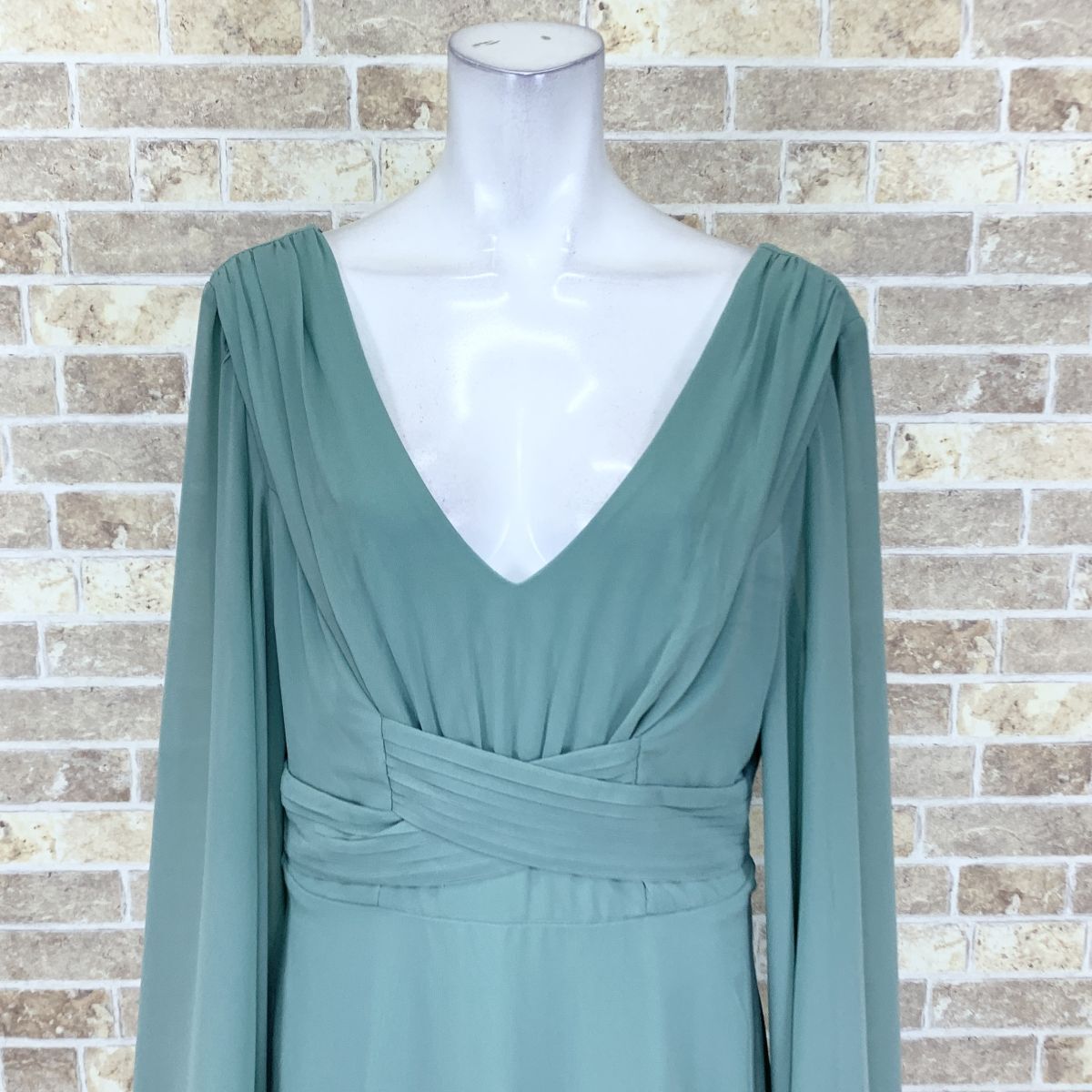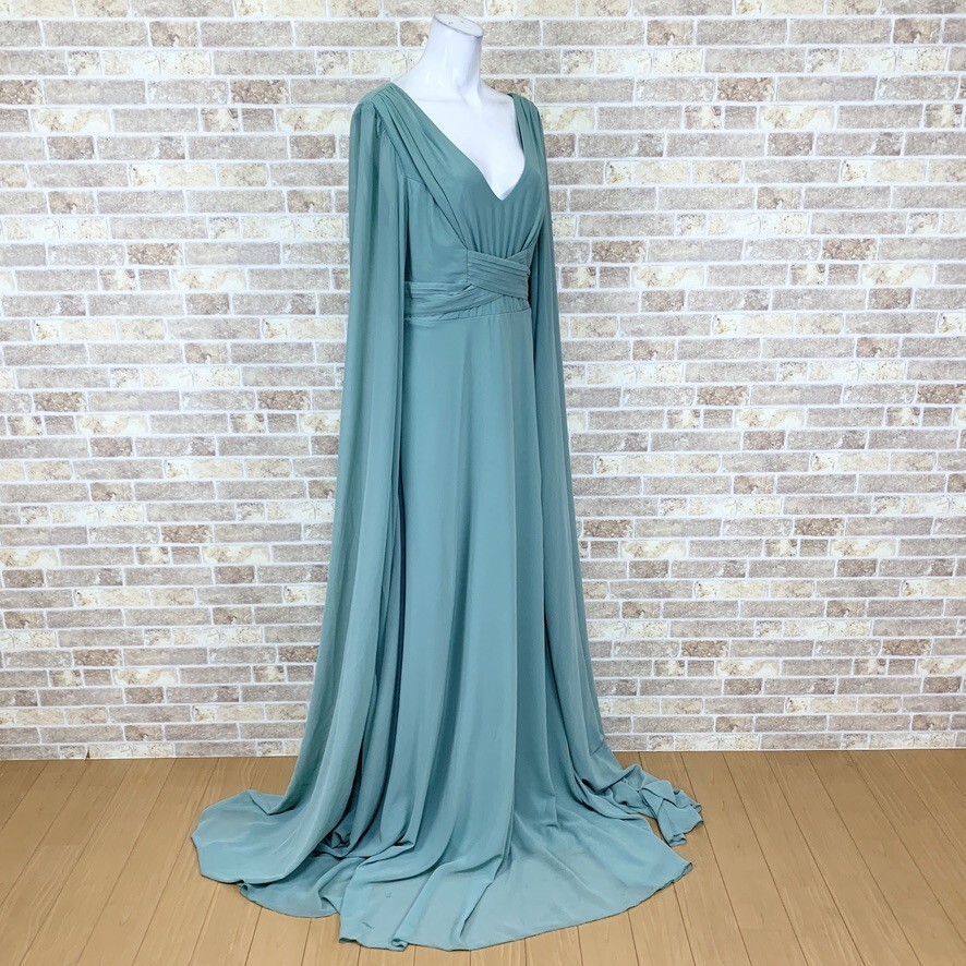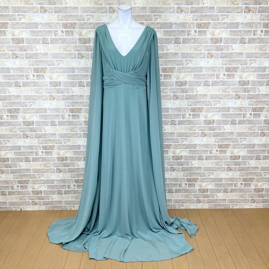 1円 ドレス FAERIESTY 舞台衣装長袖ロングドレス L 緑系 ステージ衣装 カラードレス 発表会 イベント 中古14501