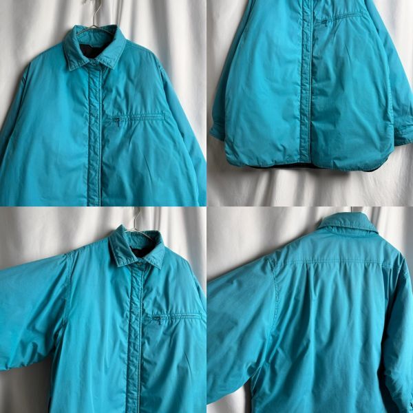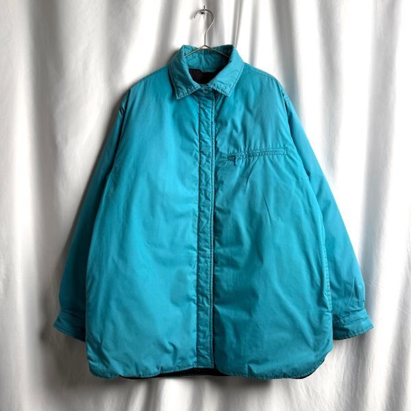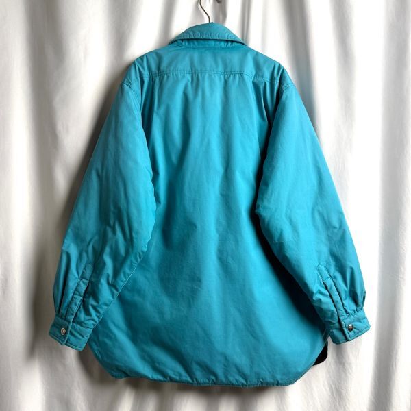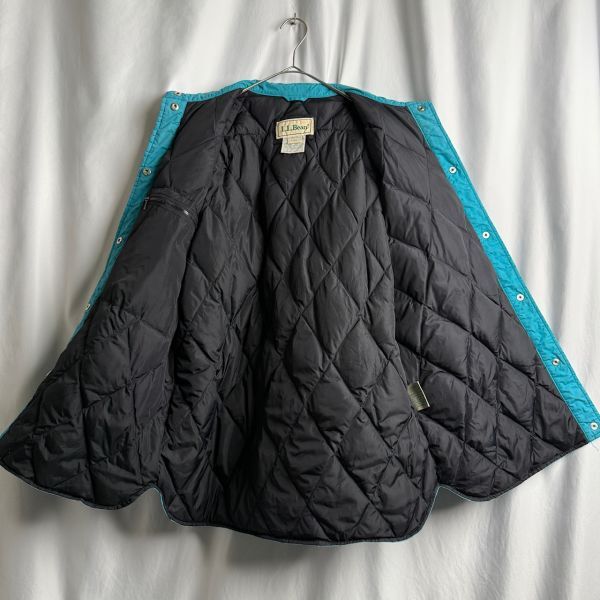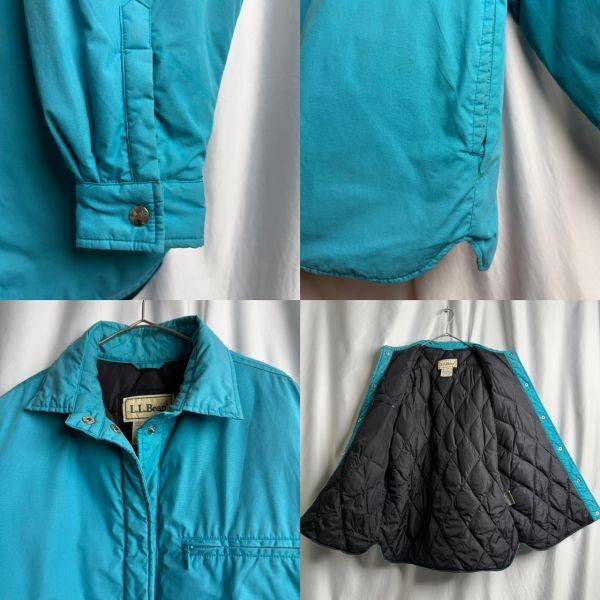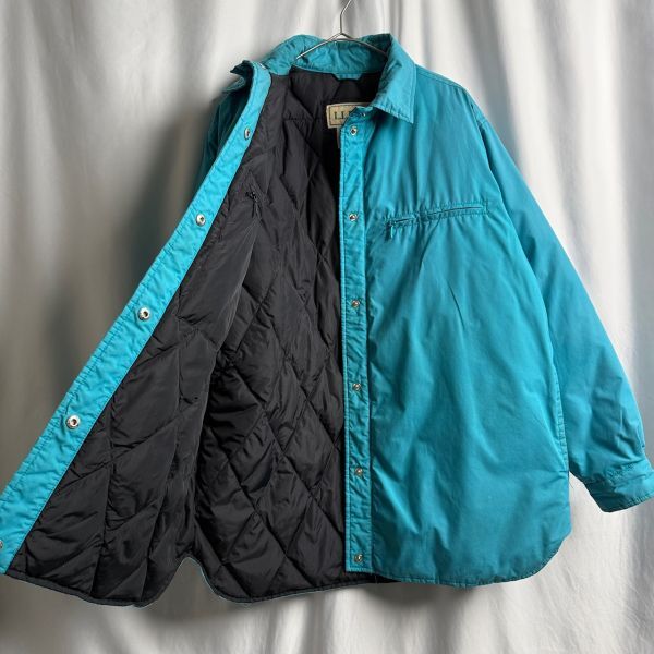 90s L.L.Bean ダウン スナップ シャツ ジャケット L ブルーグリーン 青緑 ブルゾン エルエルビーン 80s オールド ビンテージ 1
