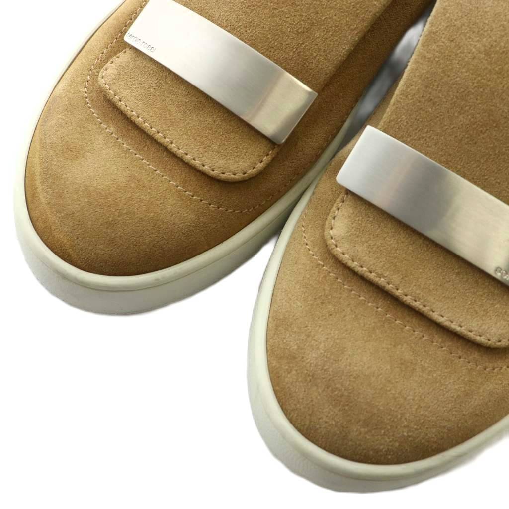 セルジオロッシ Sergio rossi SR1 スリッポン スニーカー スエード レザー ローカット プレート金具 5 24cm 茶色 ブラウン レディース