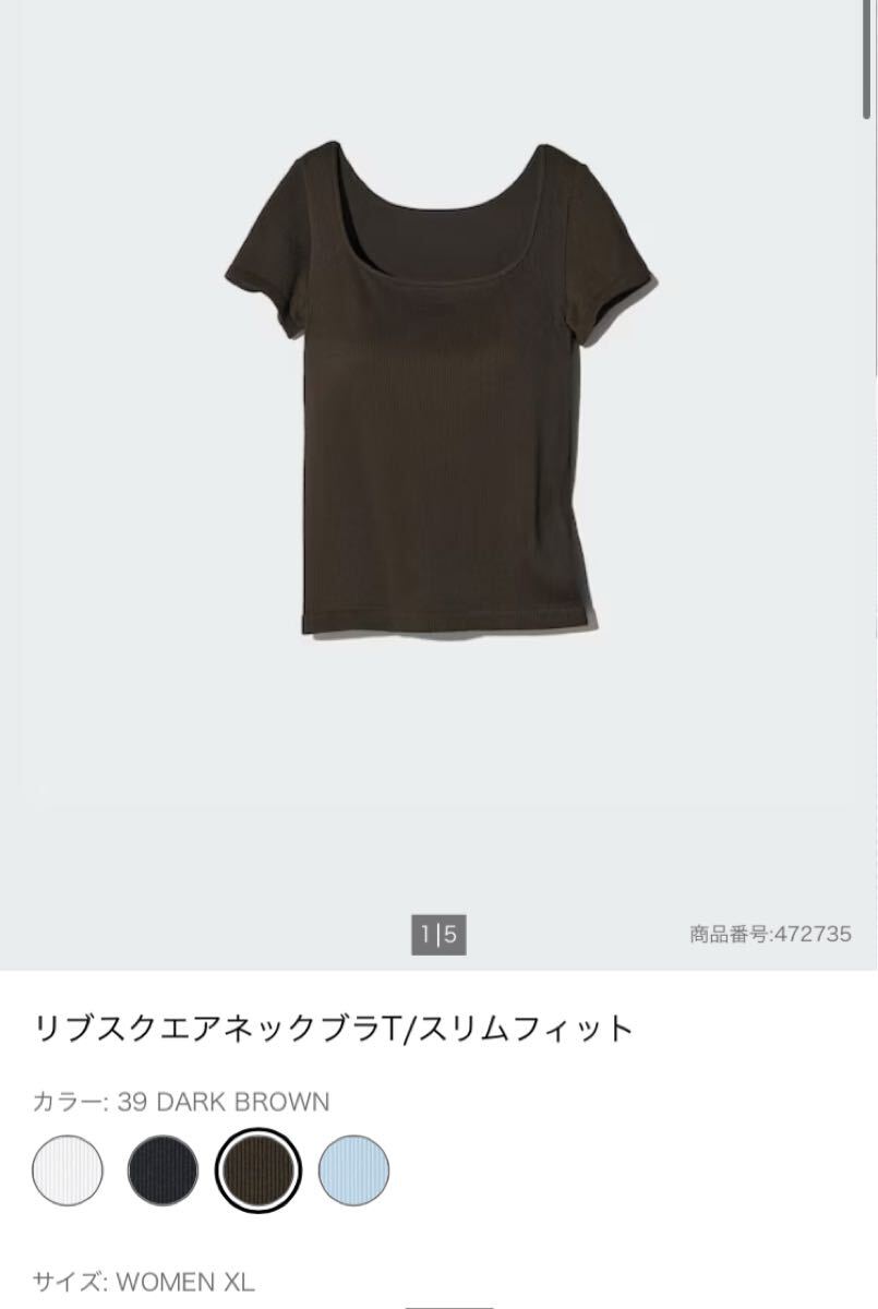 ユニクロ リブスクエアネックブラT/スリムフィット