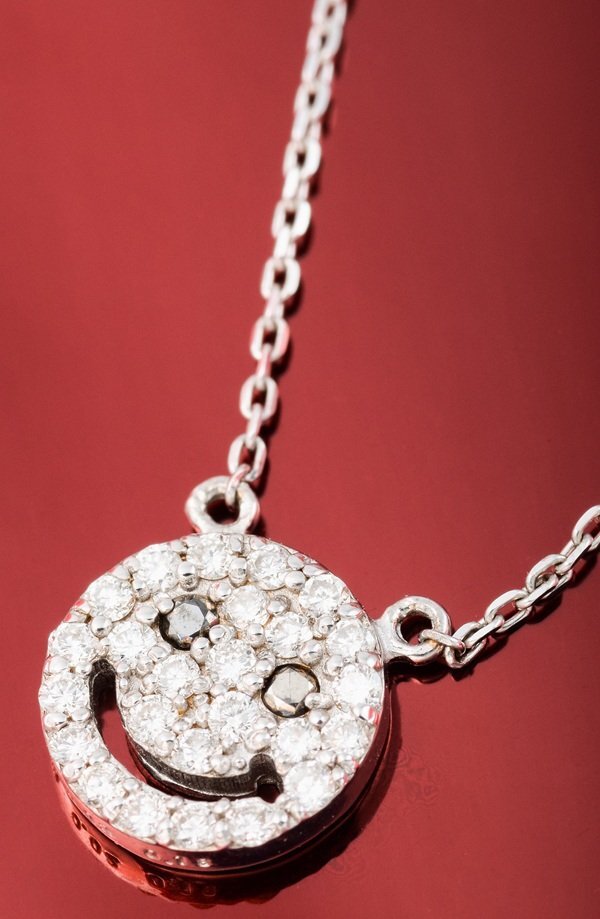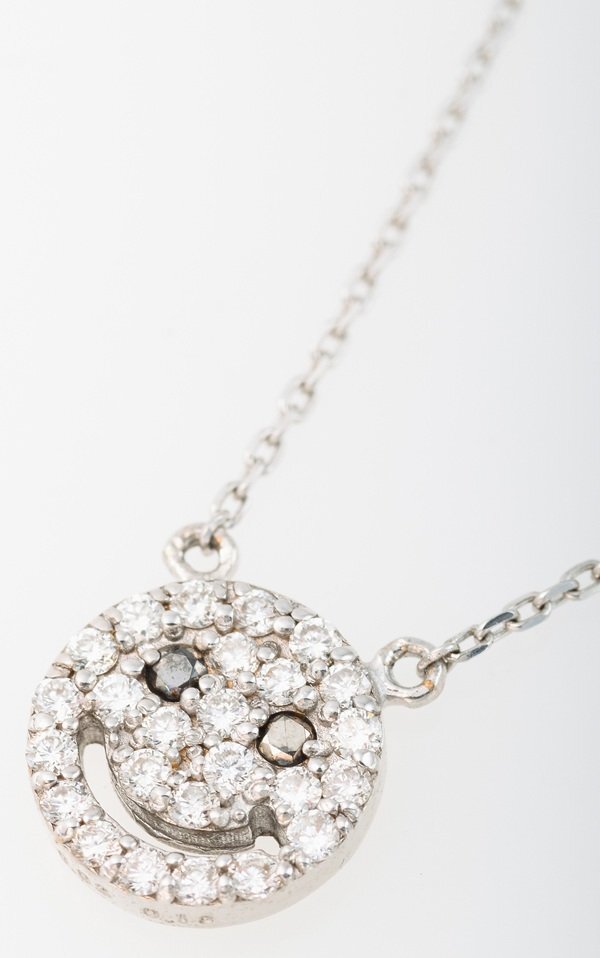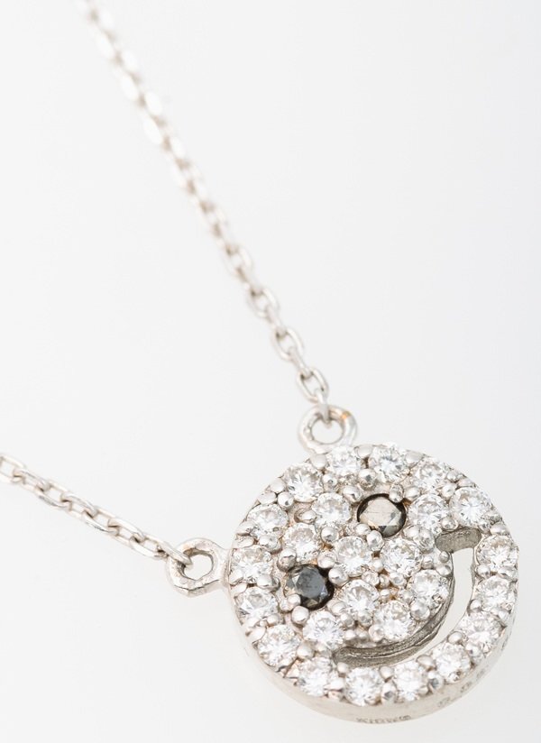 説明ダイヤモンドとブラックダイヤモンドを使用したスマイルモチーフのネックレスです。