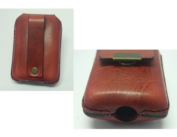 送料290円~新品 日本製 牛革製 ベルト通し付きZIPPOケース(レッド)_