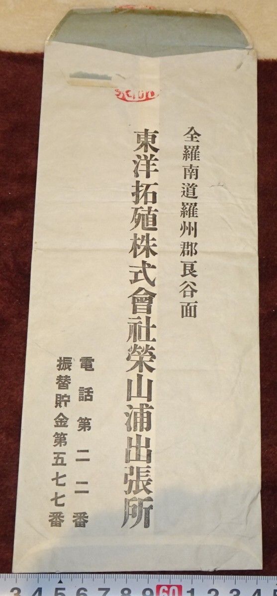 rarebookkyoto o264 朝鮮 京城 東洋拓殖((株) 賞與金封筒 大型  1920 年   李王家 溥儀