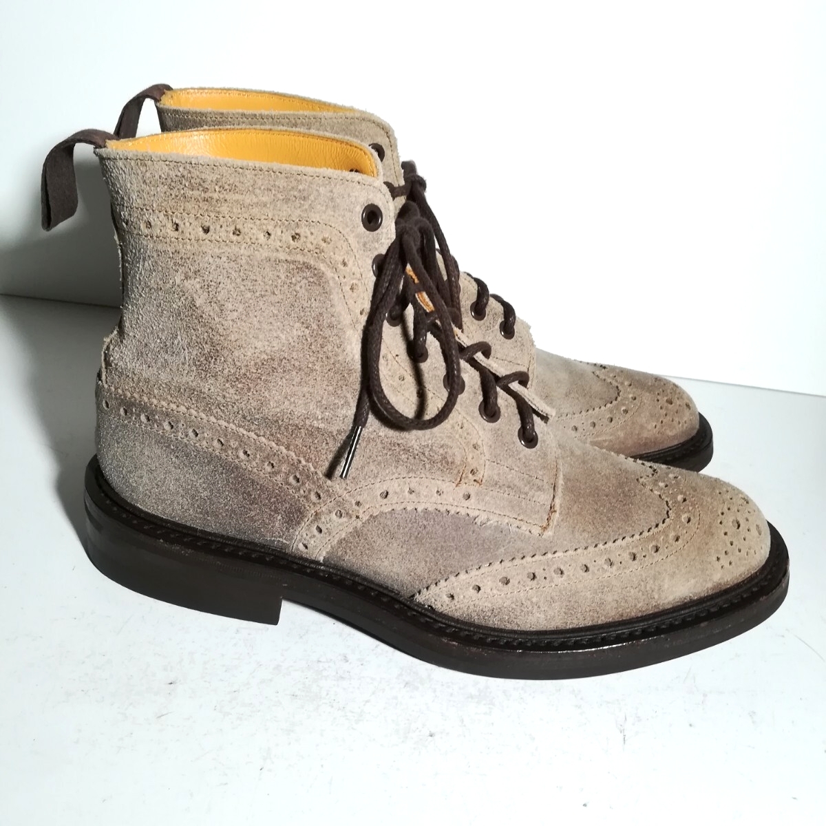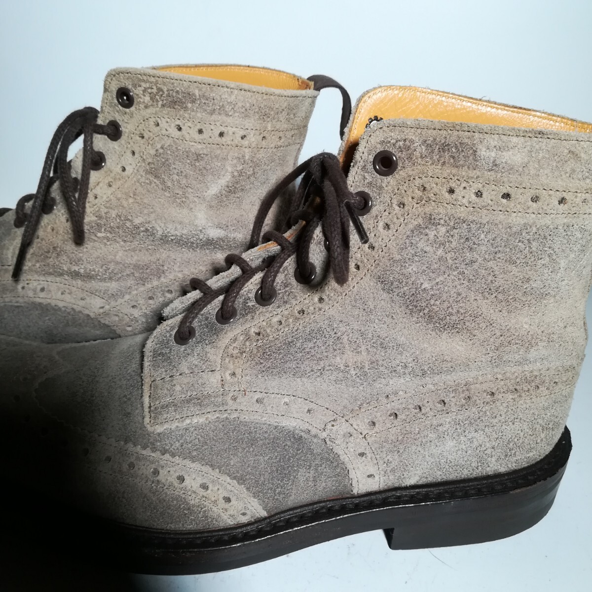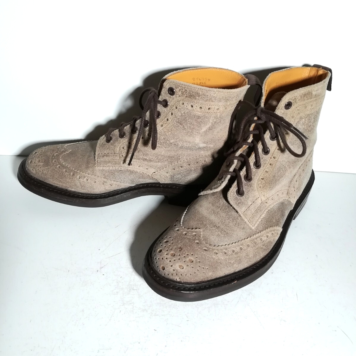 | 商品説明 | 埼玉県からの発送になります。 おてがる配送 宅急便にて発送致します。 発送は落札してから1~3日見ていただければと思います。諸事情により発送が遅れる可能性がございます。 中古品のトリッカーズ カントリーブーツです。 商品詳細 お色 グレー ベージュ サイズ 9 アウトソール全長約31.4cm 全幅 約12cm (素人採寸ですので多少の誤差はご容赦ください) ●状態①「外観」 履きジワ、擦れ、汚れ・変色、スエード特有にくすみや毛羽立ちがございますが、比較的良好な状態です。 ●状態②「ソール・インナー」 ・インソールロゴは綺麗に残っています。 ・踵の削れは2mm程度ございます。 ●その他・付属等 シューズキーパーや箱、袋といった付属品はございません。 神経質な方はご購入はお控えくださいますようお願い致します。 こちらに重大な過失があった場合のみ返品可(それ以外のサイズ違い等といった理由は不可。) また、お届けしてから1週間以上経過した物についても不可とさせていただきます。上記返品期限経過後の取引ナビ等々からの返品についてのご連絡に関しては対応致し兼ねますのでご了承ください。 出品商品に関しましては他で譲り先が見つかった、在庫処分等の理由で予告無く出品を取り下げる場合もございますので、予めご了承ください。 ※領収書の発行は受け付けておりません。 見落としている傷や汚れ、また中古品などには検品時に気づけないような経年の使用や保管による内部劣化や消耗などがある可能性が御座います。また、シューキーパーを入れて撮影しておりますので実際と印象が異なる場合がございます。 重ねてになりますが、ご理解のある方だけ、ご入札下さいませ。 商品はプチプチに包装して発送致します。スエード素材の商品はプチプチの跡が付く可能性がございますので、ブラシや手で均していただくようお願い致します。 商品写真は撮影時の明るさや光の当たり具合、お使いのディスプレイ(彩度、明るさの設定)等によって、実物の色味と差が生じる場合がございます。 また、当方は素人ですので予めご了承ください。 他にも様々出品しておりますので、どうぞご覧ください ↑↑↑↑↑↑↑↑↑↑↑↑↑↑↑↑ ■決済金額・決済方法■ 【決済金額】 落札価格+送料が決済金額となります。 【決済方法】Yahoo!かんたん決済(クレジットカード、コンビニ、銀行振込、PayPay等々)にてお支払いください。 Yahoo!かんたん決済お支払い期限内にお支払いお願い致します。 ご落札頂いた際にこちらから連絡をすることは基本的にはございません。重要な連絡事項がある場合はご連絡しますのでよろしくお願い致します。 ●お問い合わせ等、気づかないことがあり即答できない場合がありますので、あらかじめご了承ください。 また、対面や電話でのお取引やご対応は承っておりません。 以上の内容をご理解して頂いた方のみ入札下さい。 埼玉県公安委員会古物商許可衣類商 (写真機類・事務機器類・道具類・機械工具類・皮革ゴム類) 第431070035500号 |