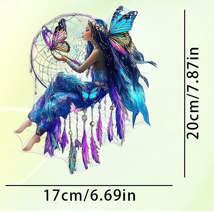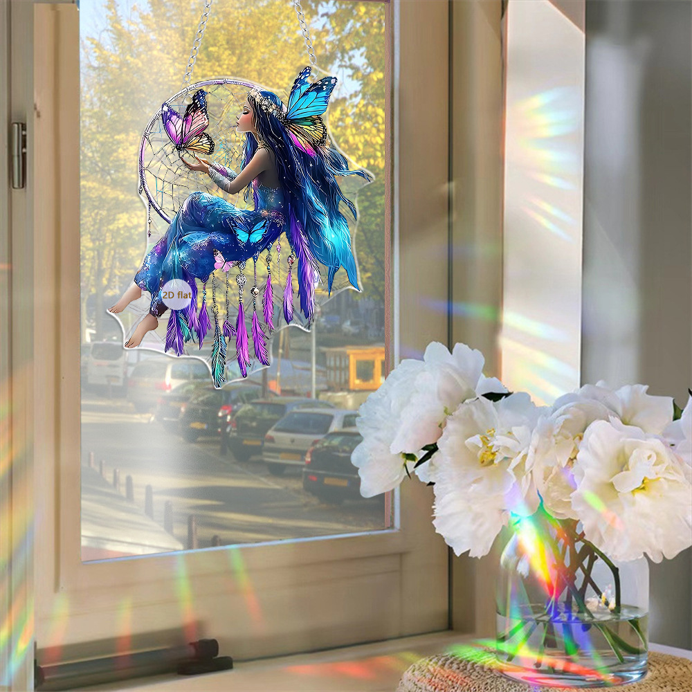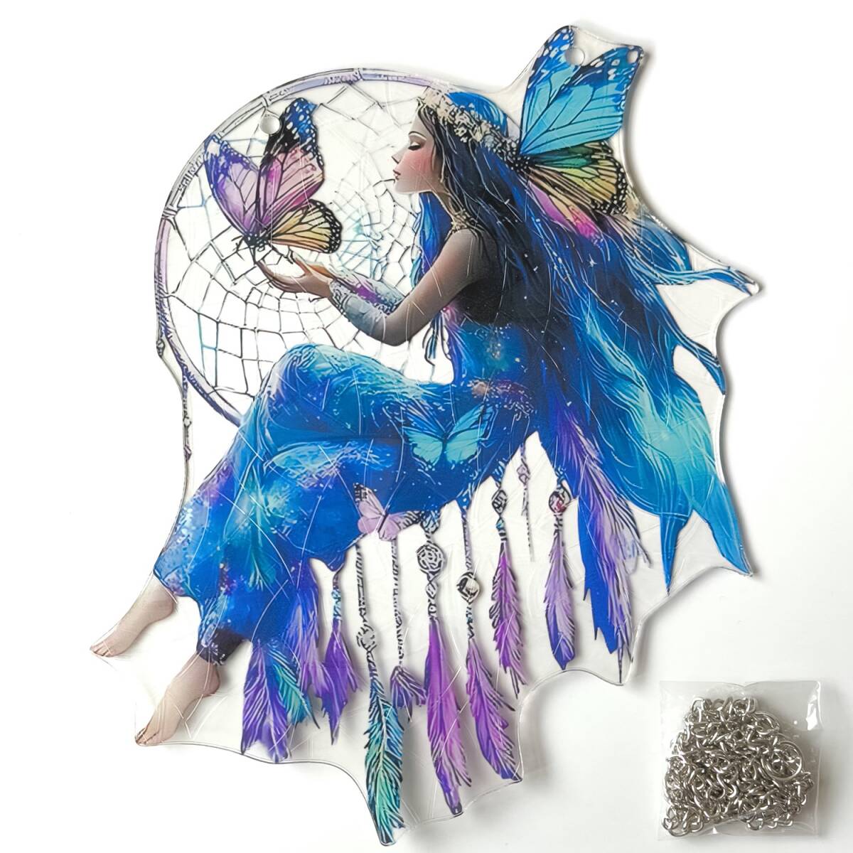 【蝶々・妖精・ カラフル】アクリルプレート 飾り サンキャッチャー チェーン付き オブジェ お洒落 壁や窓辺の飾りに◎
