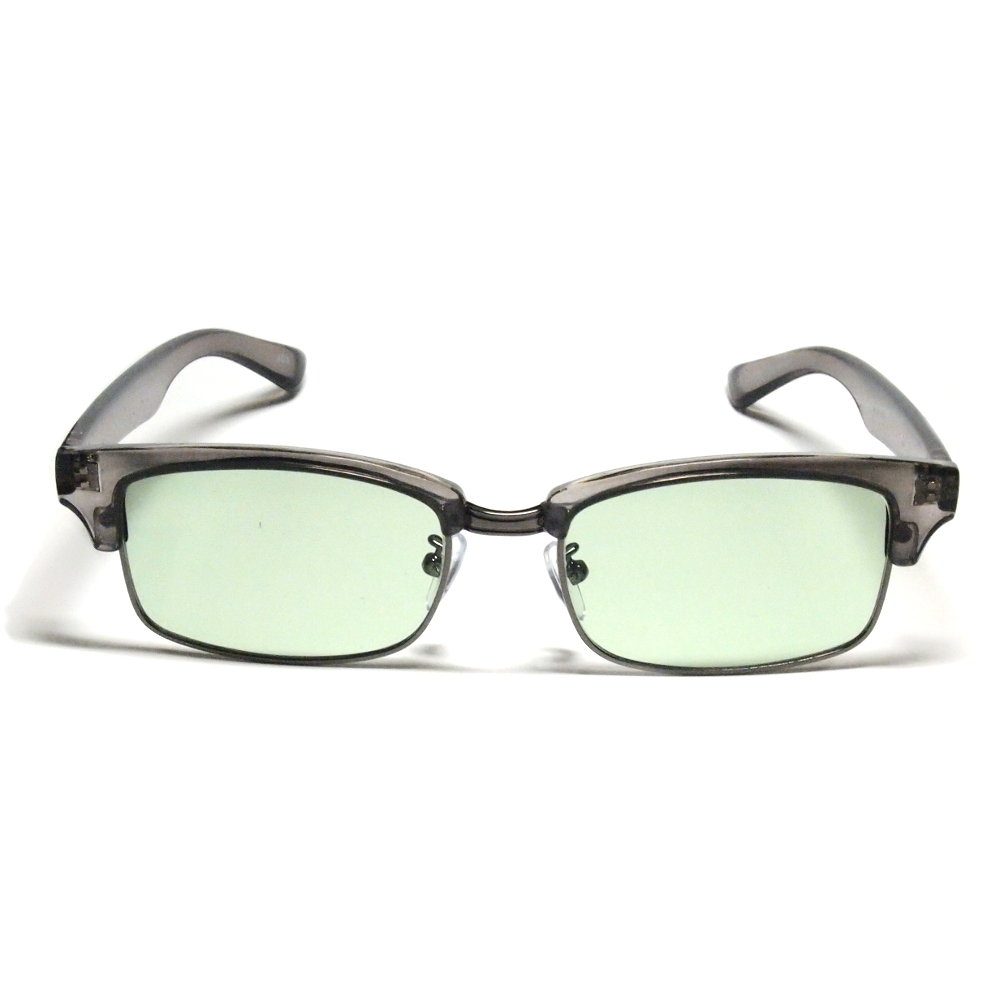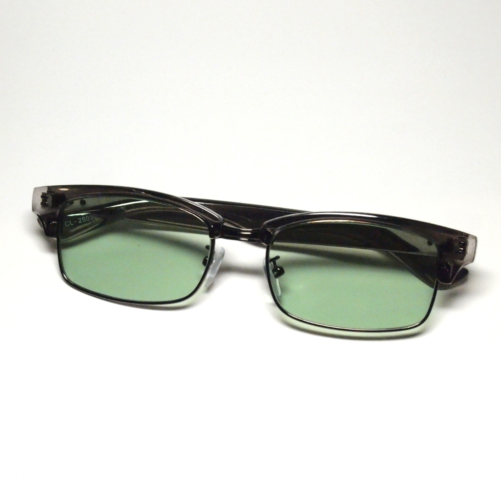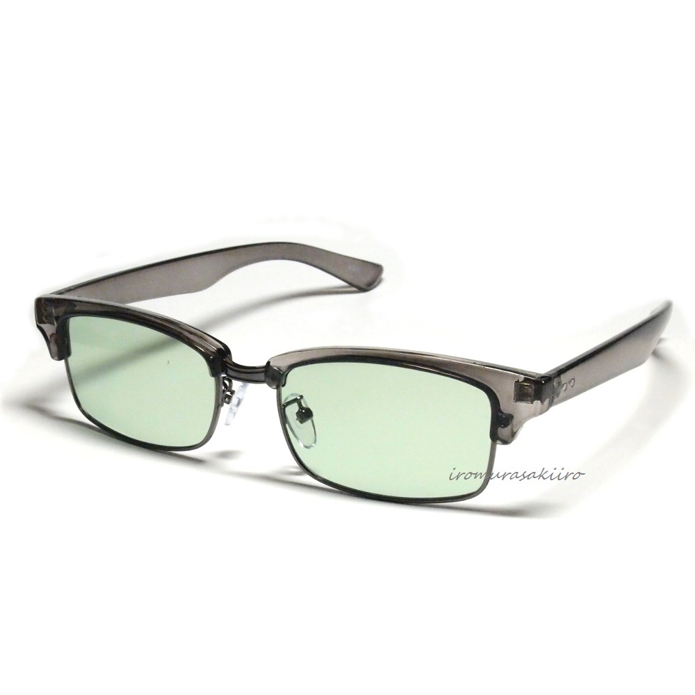 レトロおしゃれ サングラス ライトグリーンレンズ メンズ 新品 / グレーフレーム 緑 紫外線カット 薄い色 目が透ける CL25032GY/GR