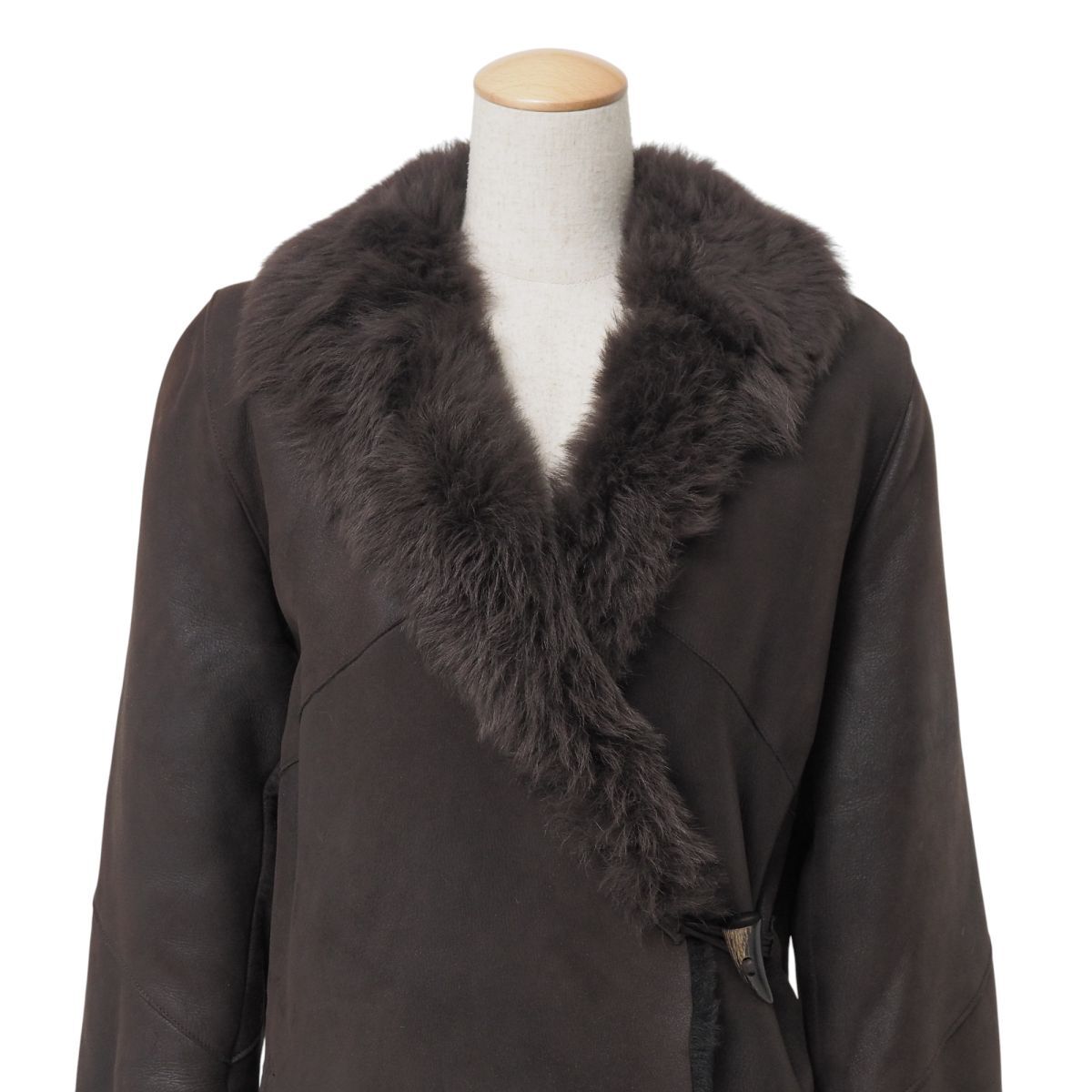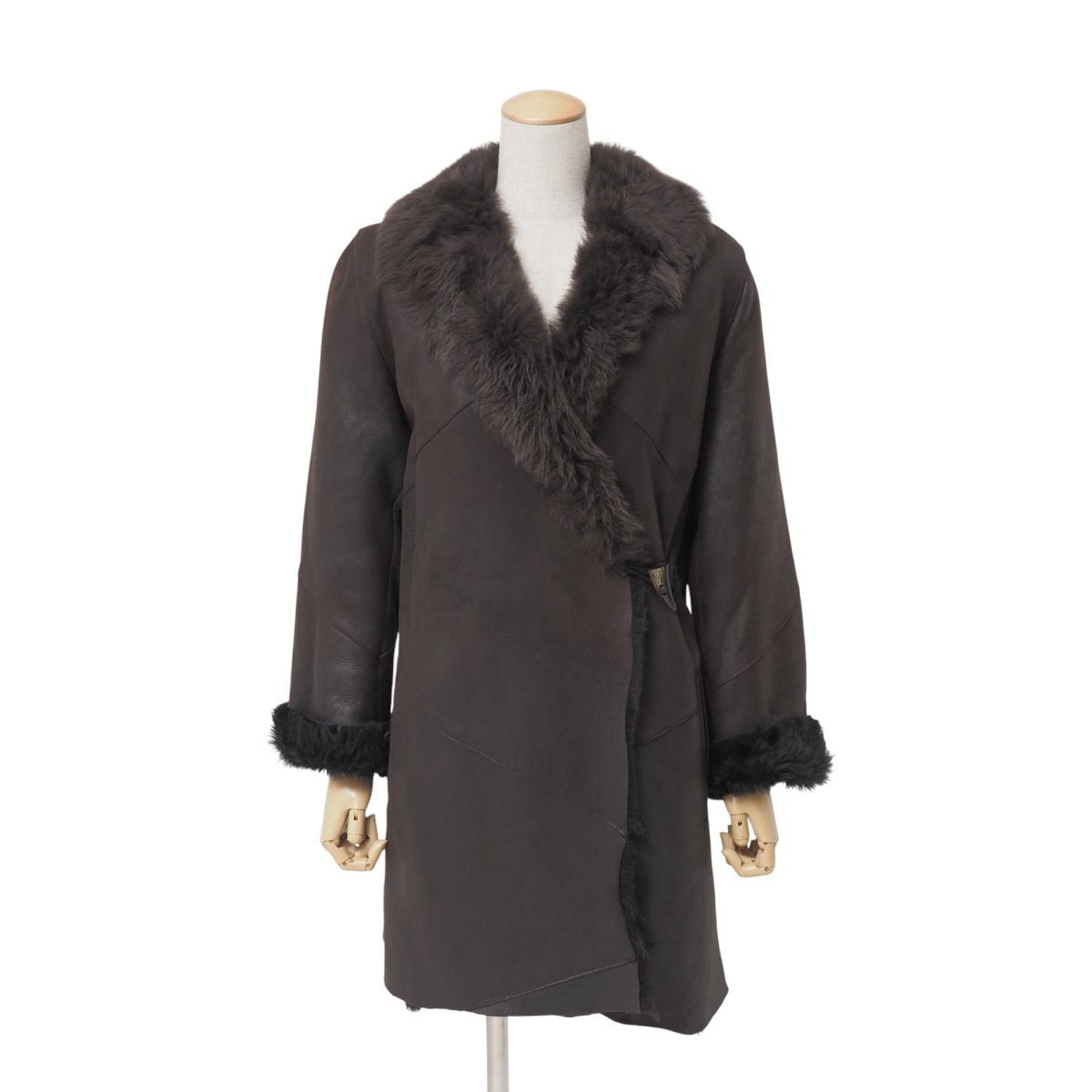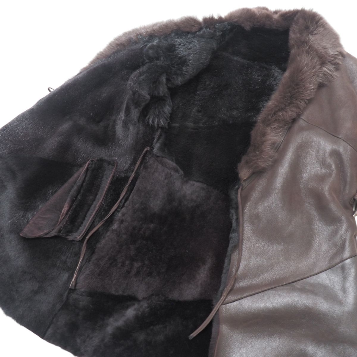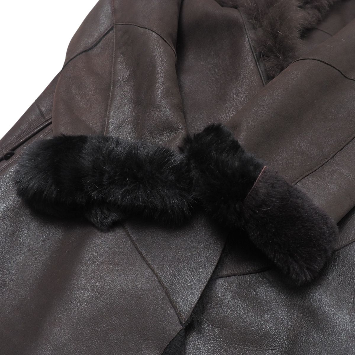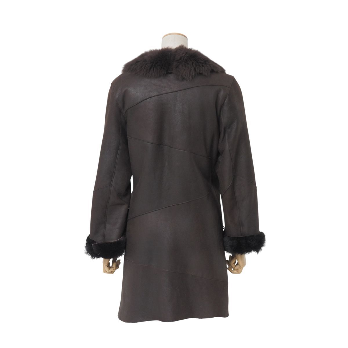 | GS2719▲TONY ENZO ムートンコート 羊革 リアルファー襟 ミドル丈 シープスキン 本毛皮 サイズM~L相当 ダークブラウン系 | |||