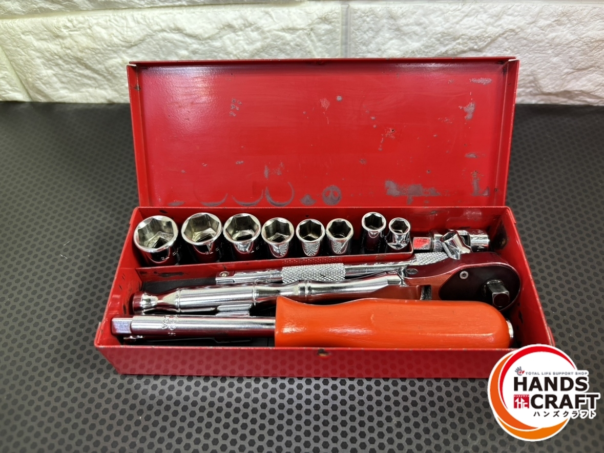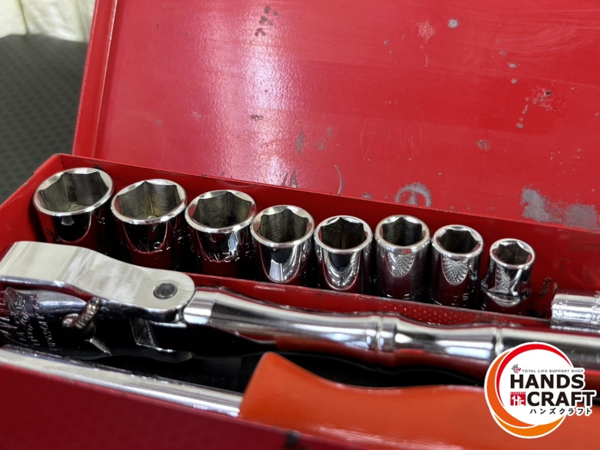 ◆仕様・・・激レアな旧ロゴの工具箱とラチェットセットになります。1/4インチドライブ6インチ(MR690FK)152mm1/4インチドライブフレックスハンドル(M6SA)150mm1/4インチドライブエクステンションバー(M4EK)6.3mmソケットサイズ…14,13,12,10,9,8,6,5.5