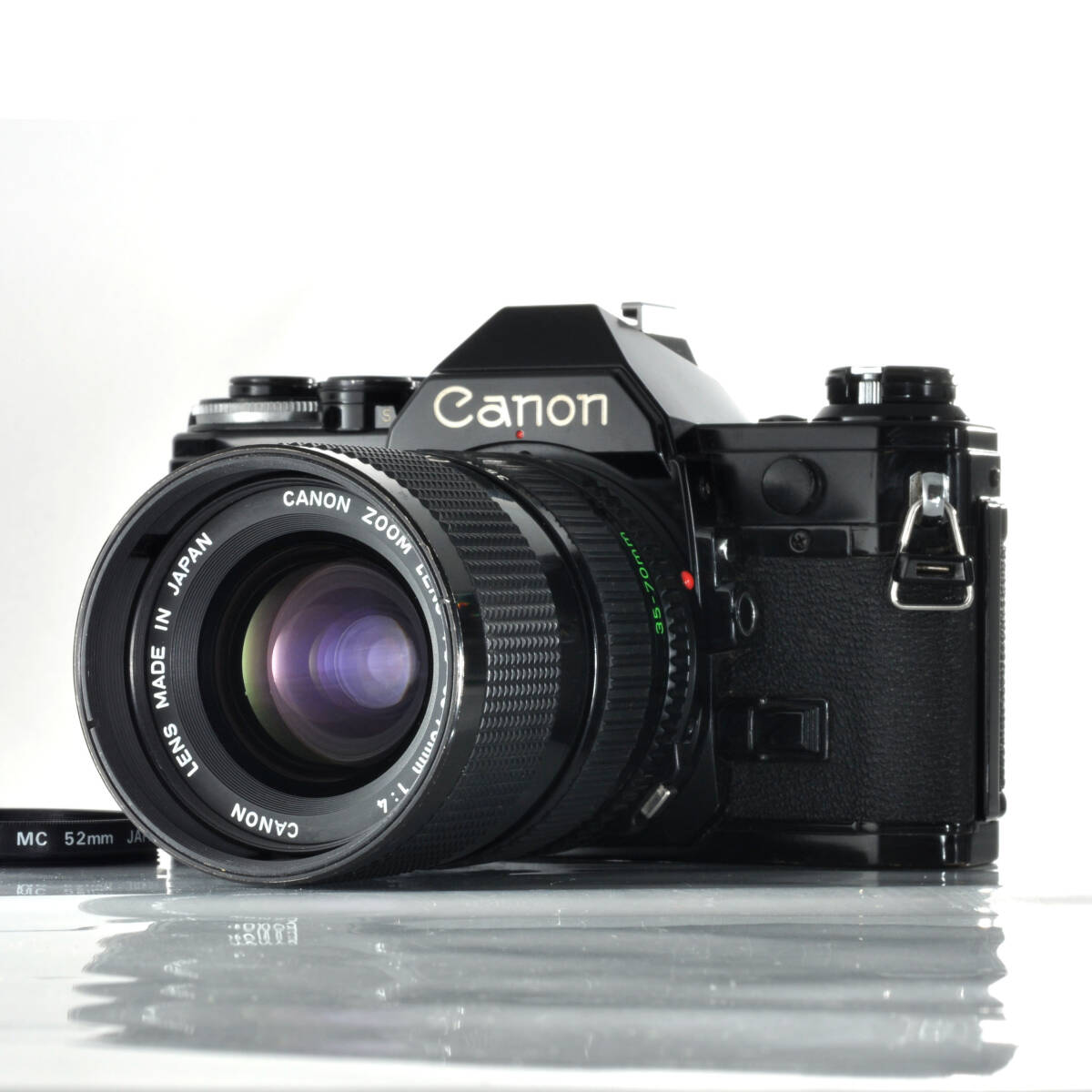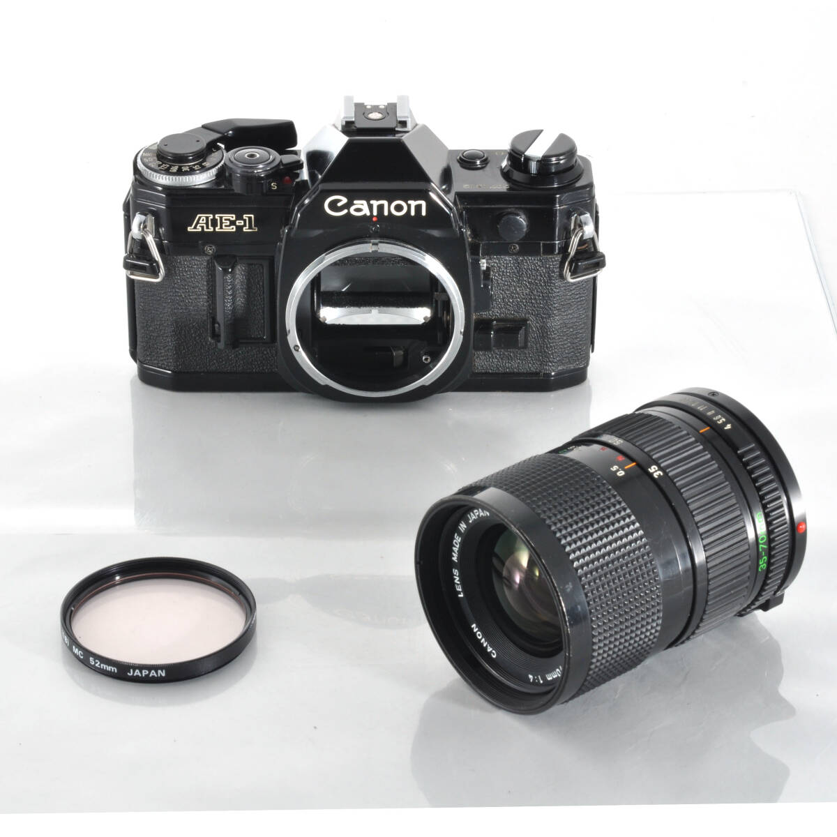 Canon AE-1 は1976年発売の電子制御シャッターを搭載した一眼レフカメラで、扱いやすさと高性能を兼ね備えたベストセラーモデルです。付属のFD 35-70mm F4は標準域をカバーする便利なズームレンズで、日常撮影から旅行まで幅広く活躍します。