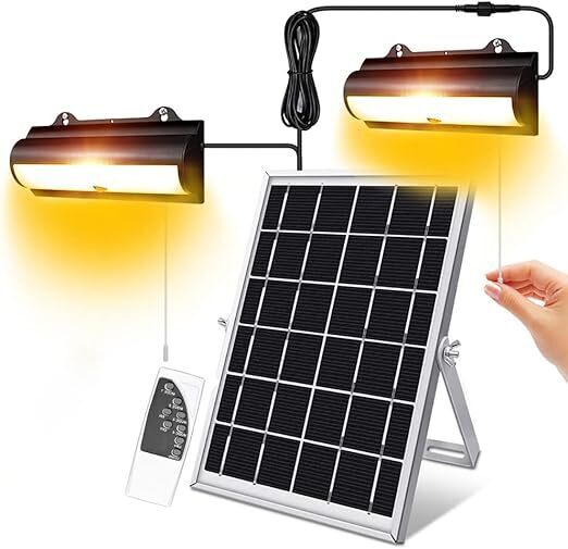 【分離型・屋内/外兼用】屋外設置が必要で夜間にのみ点灯するほとんどのソーラーライトとは異なり、ソーラーシェッドライトは屋内でも昼間でも機能します。各ライトは5mのケーブルでソーラーパネルに接続されているため、ソーラーパネルを屋外に置いて充電し、ライトを屋内または屋根の下に吊るすことができます。