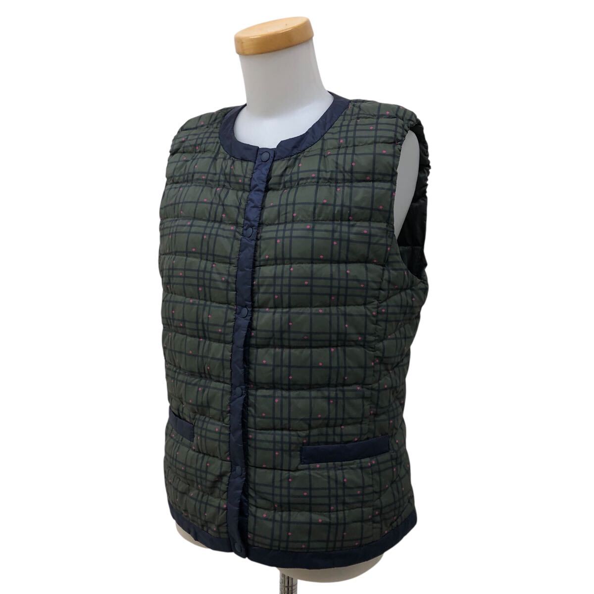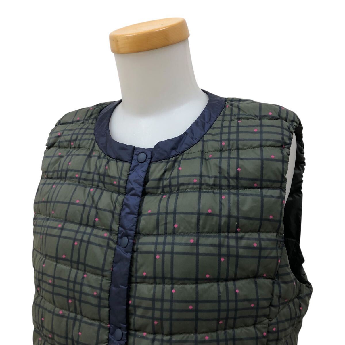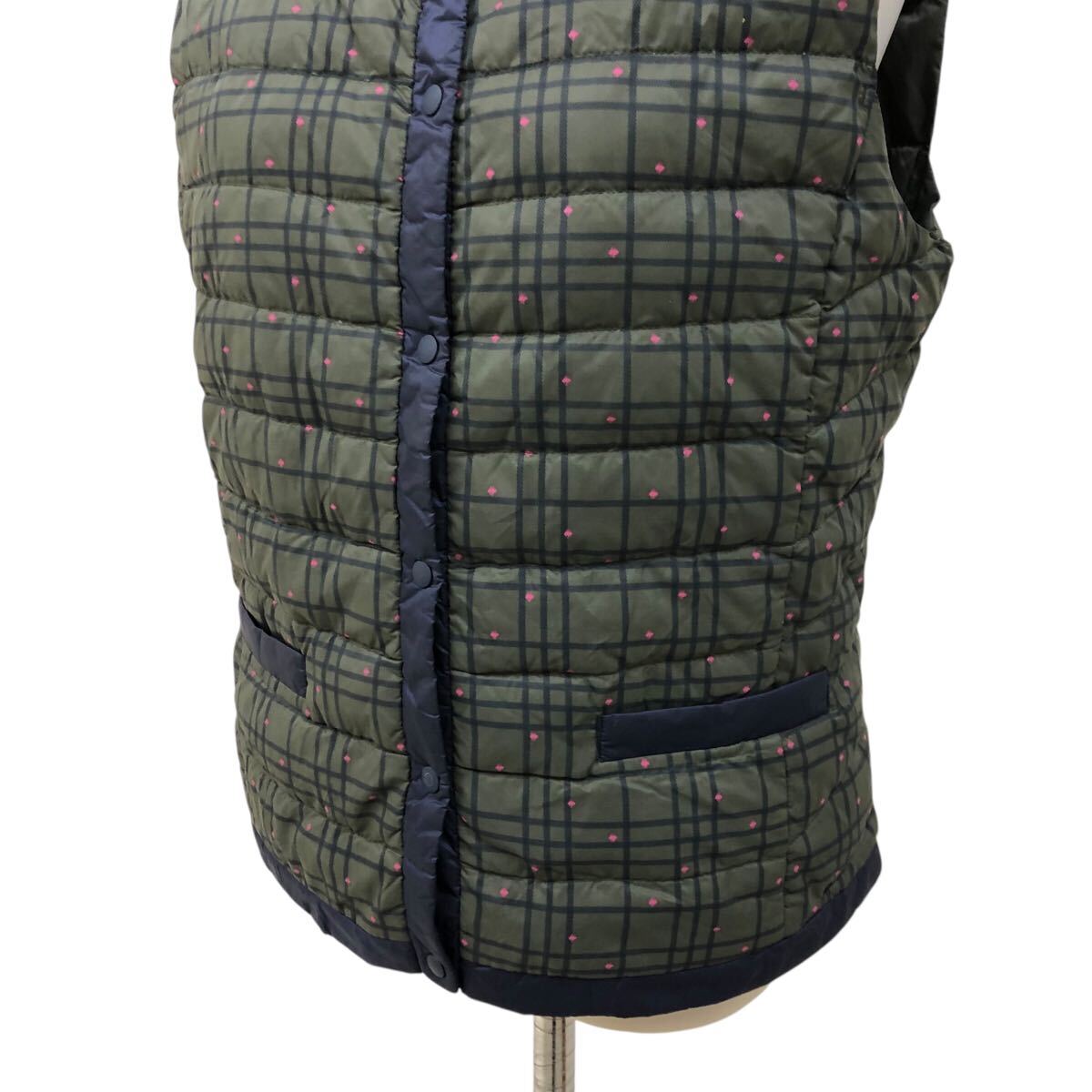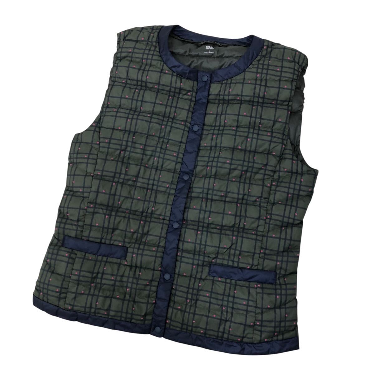 9NK004-15 UNIQLO ユニクロ ウルトラライト ダウン 90% ジャケット 上着 羽織り トップス アウター ベスト 総柄 カーキ レディース 女性用 L