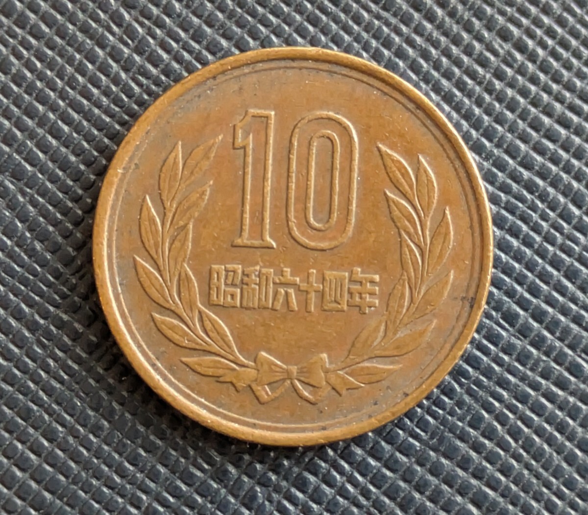 昭和64年 10円硬貨です。写真が上手く取れなかったのですが、実際の色はもう少し濃い茶色です。