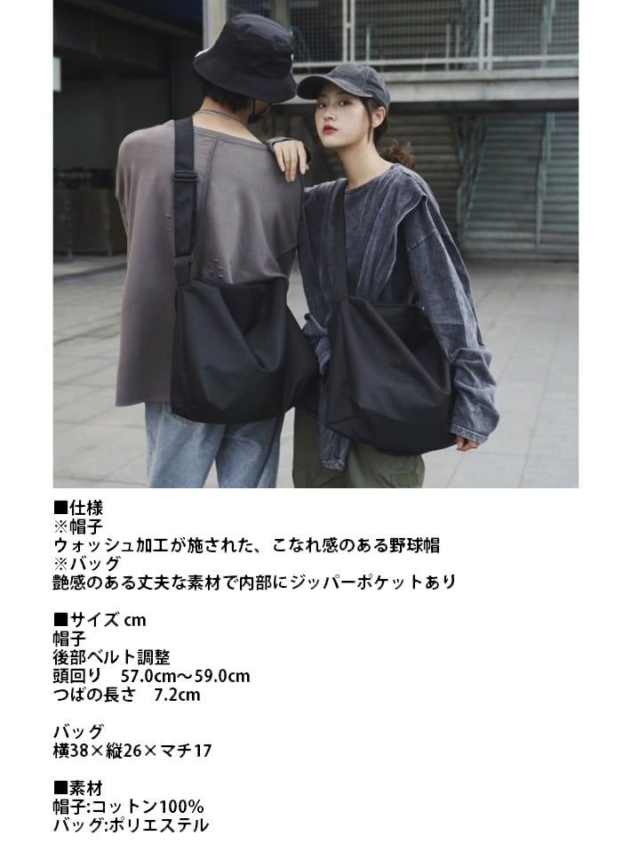黒の野球帽とショルダーバッグのコーデ販売となります!
