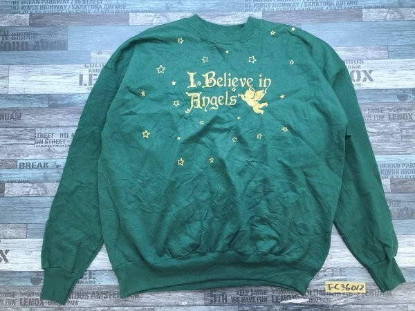 Hanes ヘインズ メンズ I Believe in Angels プリント 裏起毛 スウェットトレーナー 大きいサイズ XL 緑 です。