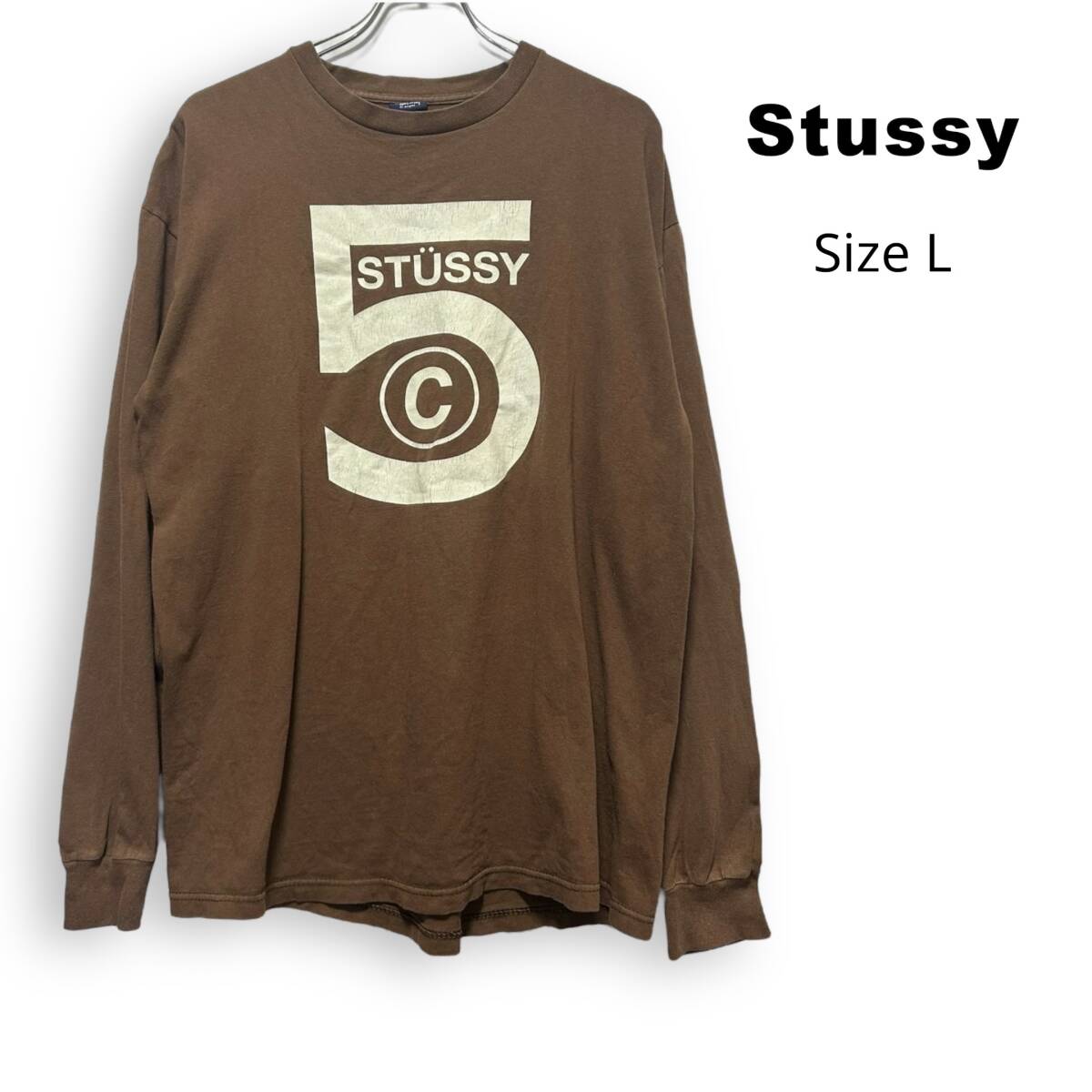 OLD STUSSY オールド ステューシー 5ロゴ 長袖 Tシャツ ロンT ブラウン L