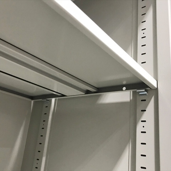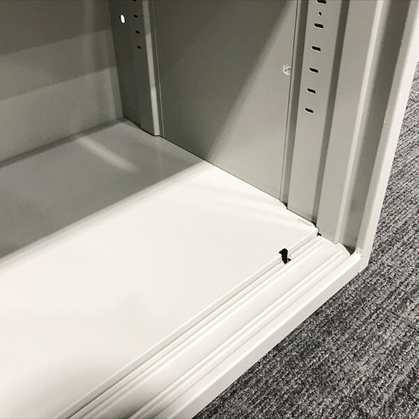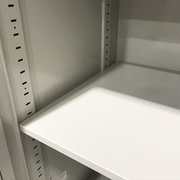 ■取り扱い番号 CH-877170B ■仕様 メーカー : プラス 製品名 : LINX 色素材 : エルグレー 外寸 : 幅900mm 奥行き450mm 高さ1100mm ランク : Bランク ■特徴 ベース付 棚板2枚 各段にA4ファイルが収納できます。狭い通路でも扉が通行の妨げになることがないので、収納物の出し入れがスムーズに行えます。 |