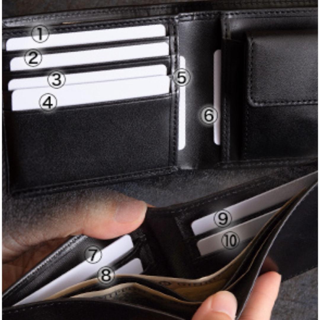 小銭入れ[1区画]、お札入れ[2区画]、カードポケット[10カ所](うち4カ所はお札入れの中)