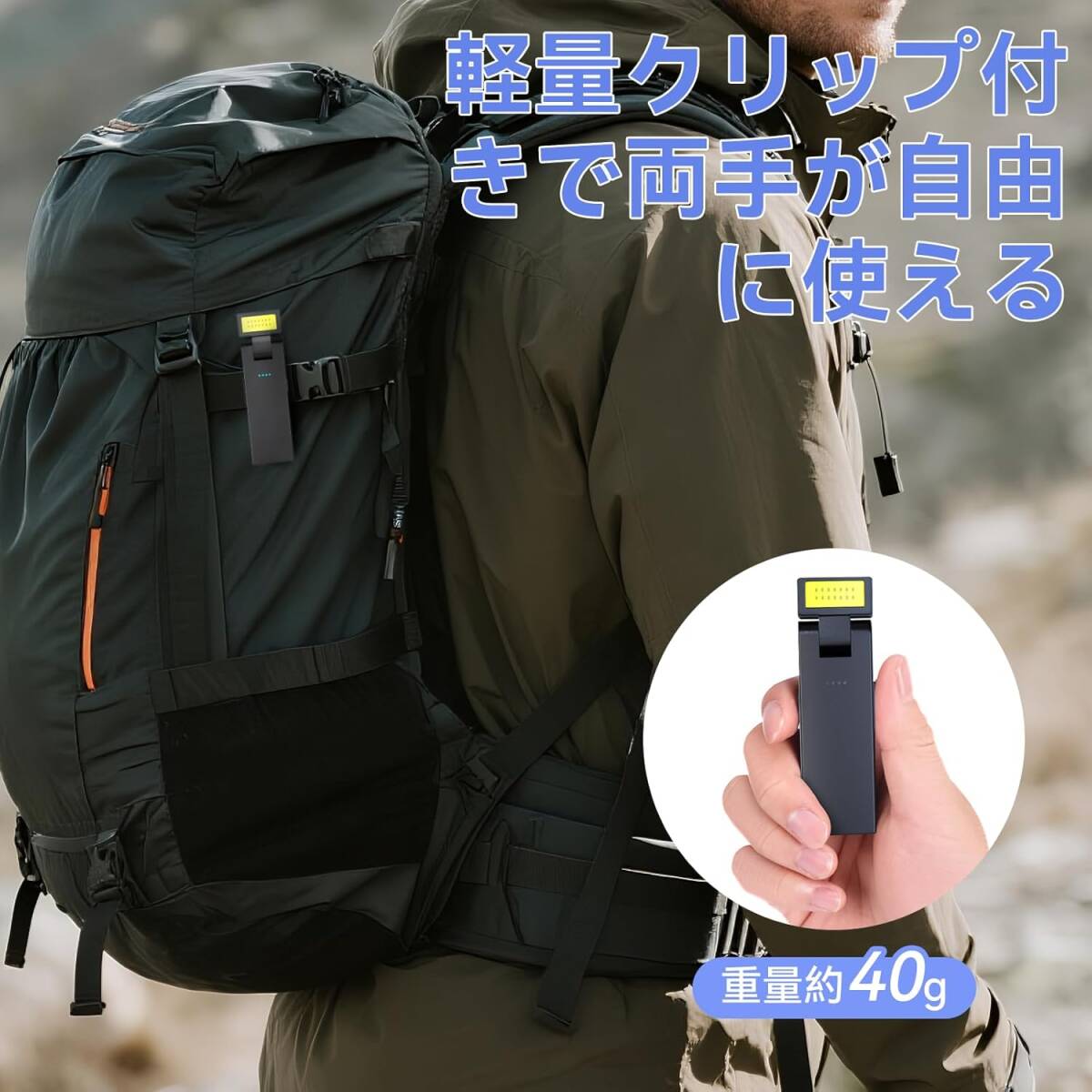 【3つの点灯モード&高輝度】 このミニライトは、コンパクトなサイズながら500ルーメンという高輝度を実現しました。アウトドアシーンだけでなく、日常生活のあらゆる場面で活躍する頼もしいアイテムです。キャンプや野外作業、非常時の照明として最適です。3種類の点灯モードに加え、国際規格の遭難信号を発信できるSOSモードを備えており、緊急時でも素早く救助を求めることが可能です。※モード切り替え時は、COBライトを直接見つめないようにご注意ください。また、長時間のご使用で本体が熱を持つ場合がありますが、これは正常な現象ですのでご安心ください。