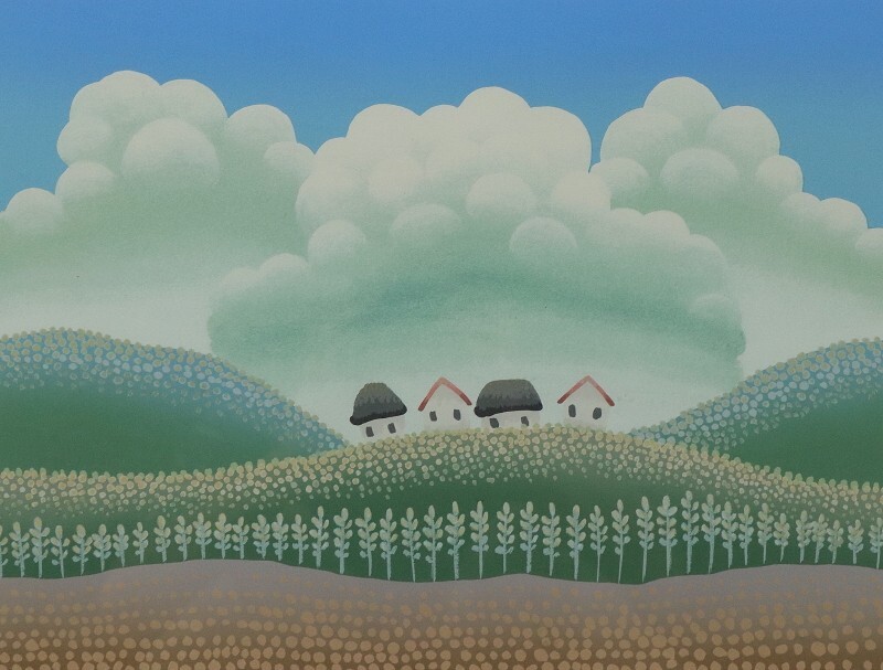 10902■【真作】イワン・ラブジン 「Country Town」 シルクスクリーン サイン有 ユーゴスラビアの画家 ナイーブアートの先駆者 額装