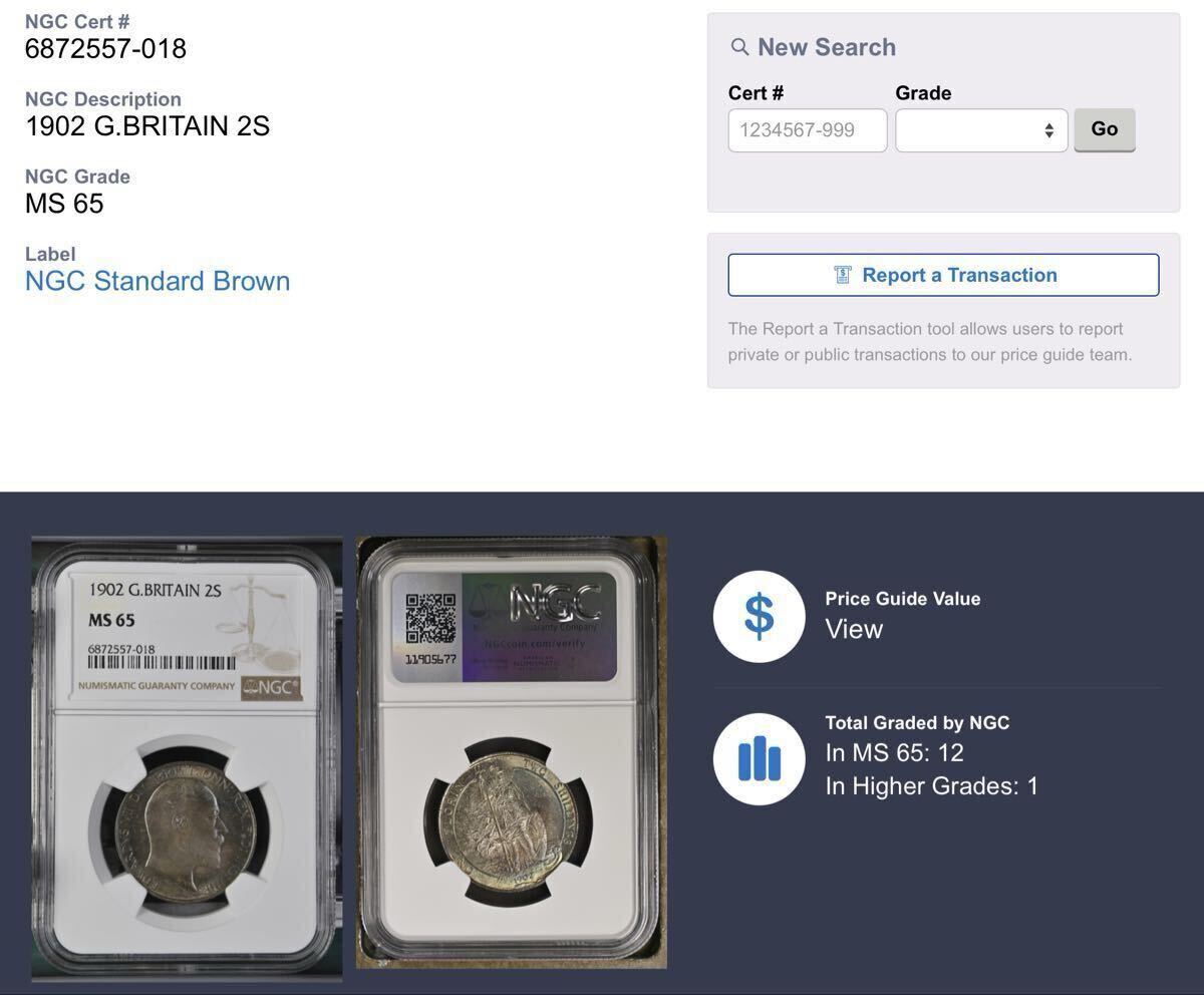 NGC MS65=準最高で、上位はたった1枚のTop2。
