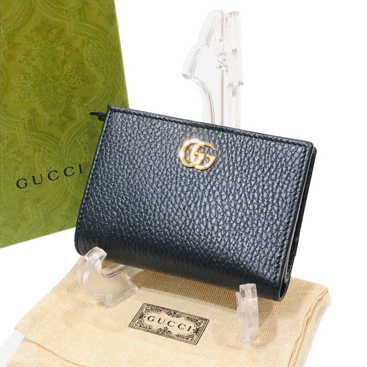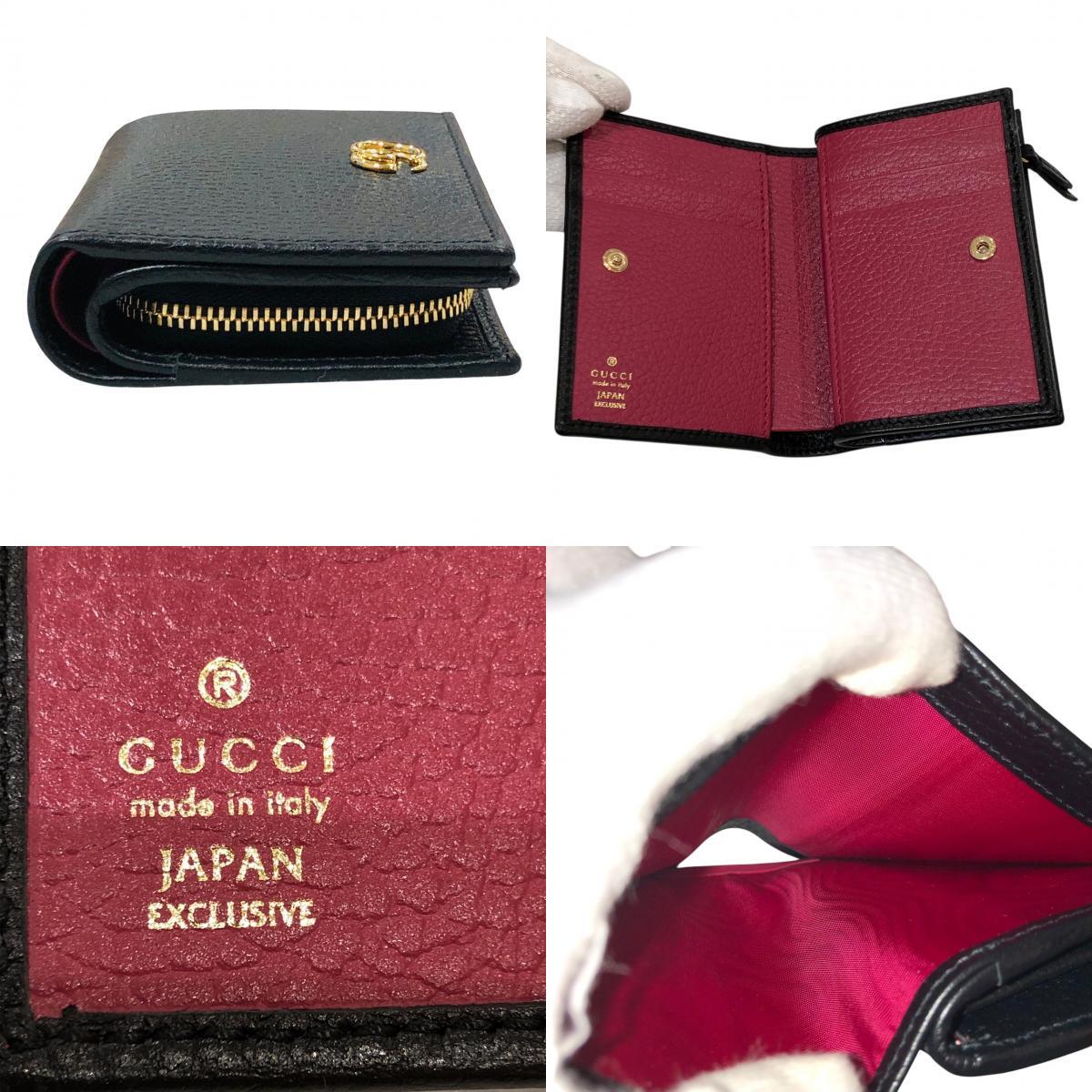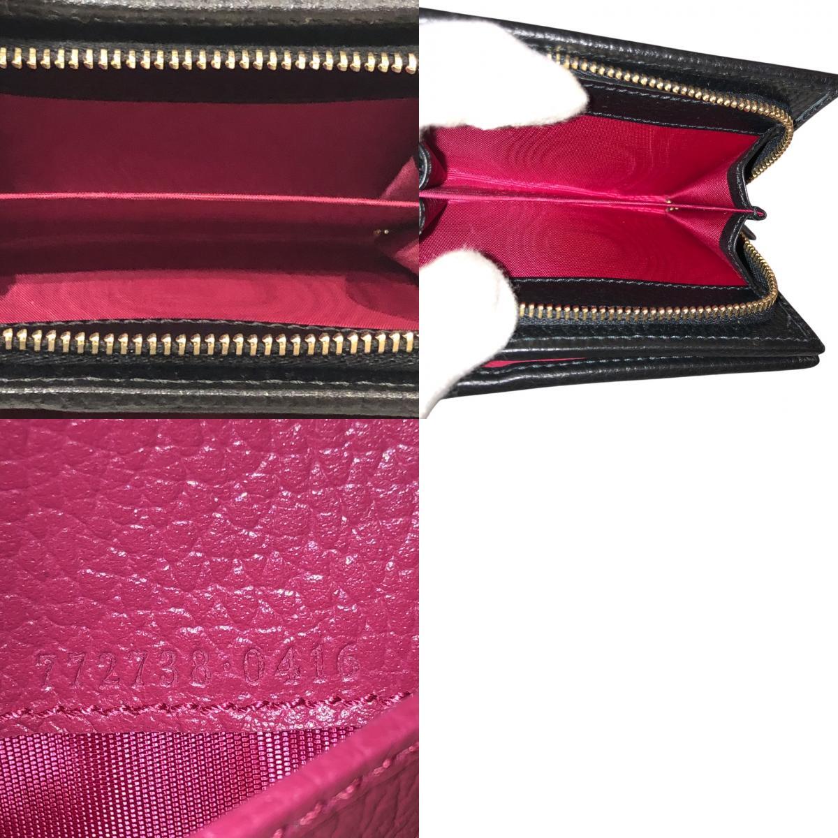 | 【美品】GUCCI グッチ 772738.0416 日本限定 ダブルG 二つ折り財布 ブラック×ピンク系 レディース |