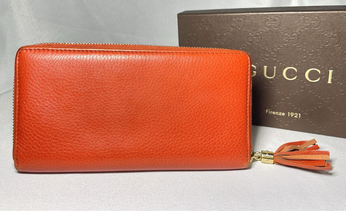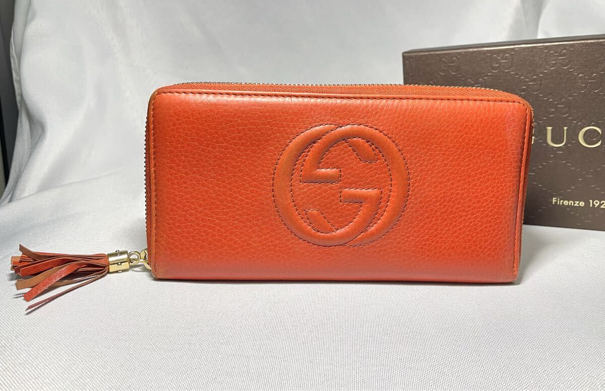 GUCCI グッチ ソーホー SOHO インターロッキングG ラウンドファスナー ジップ レザー長財布 オレンジ 小銭入れ ウォレット 男女兼用 箱あり