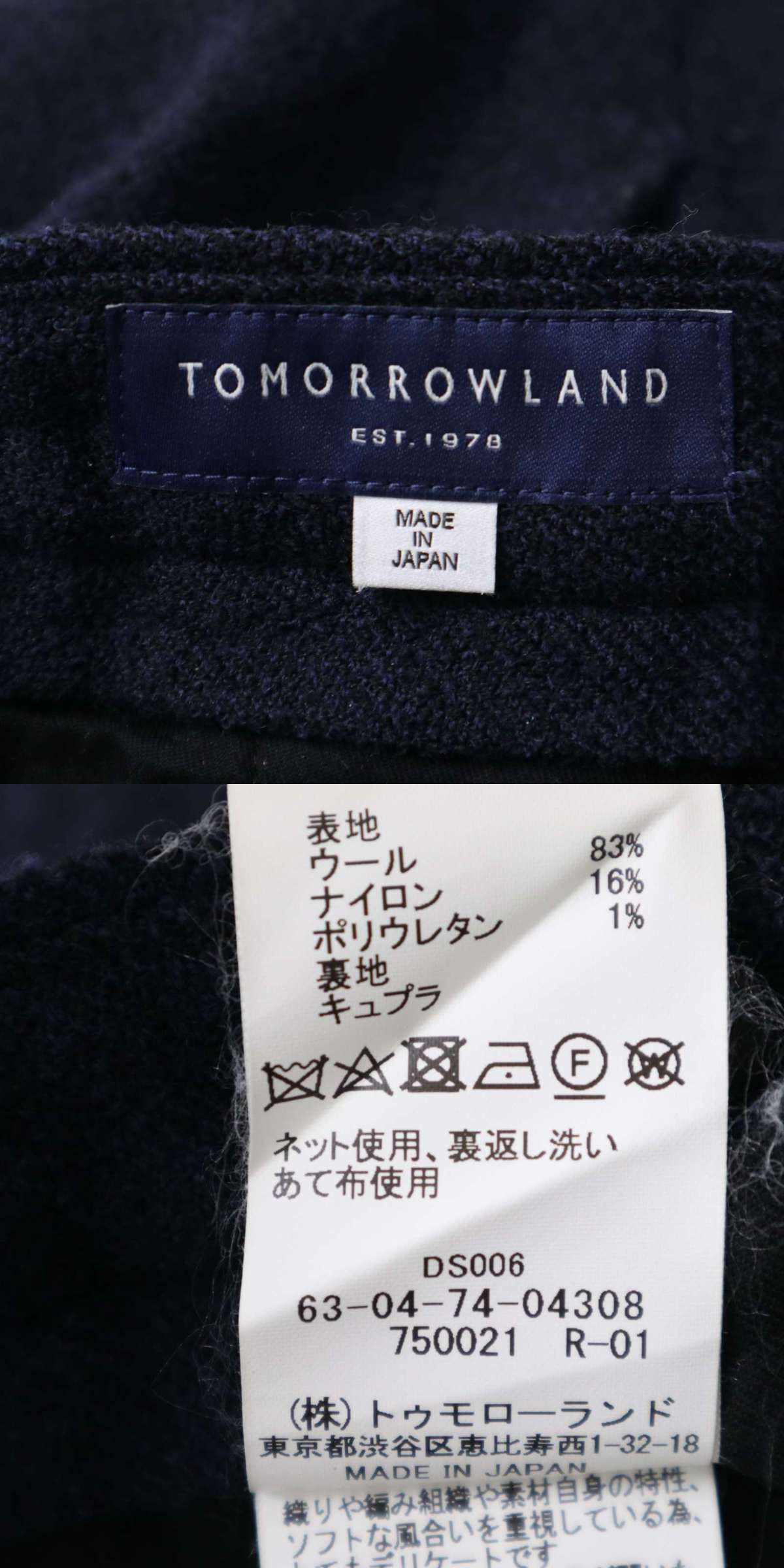 TOMORROWLAND トゥモローランド 秋冬 ウール★ ツイード スリム スラックス パンツ Sz.46 メンズ 紺 ネイビー 日本製