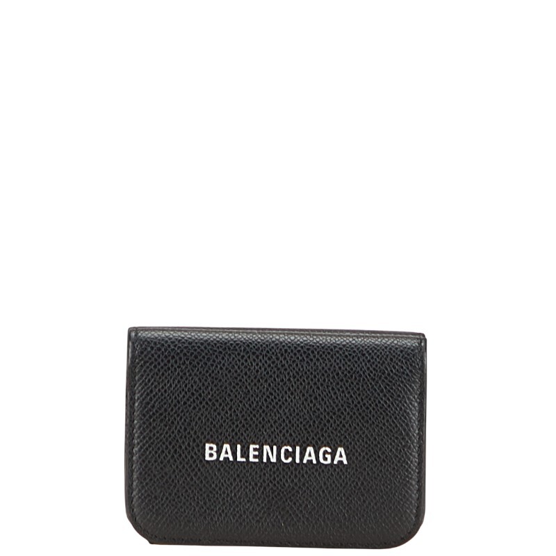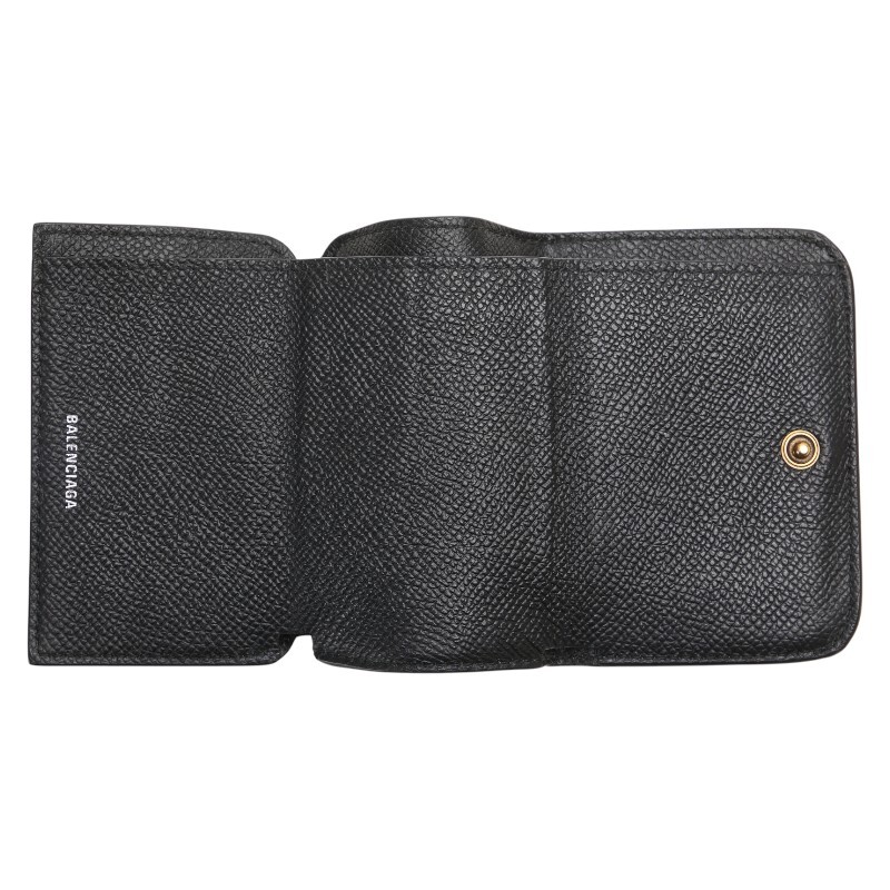 バレンシアガ ロゴ コンパクトウォレット 三つ折り財布 593813 ブラック レザー レディース BALENCIAGA 【中古】