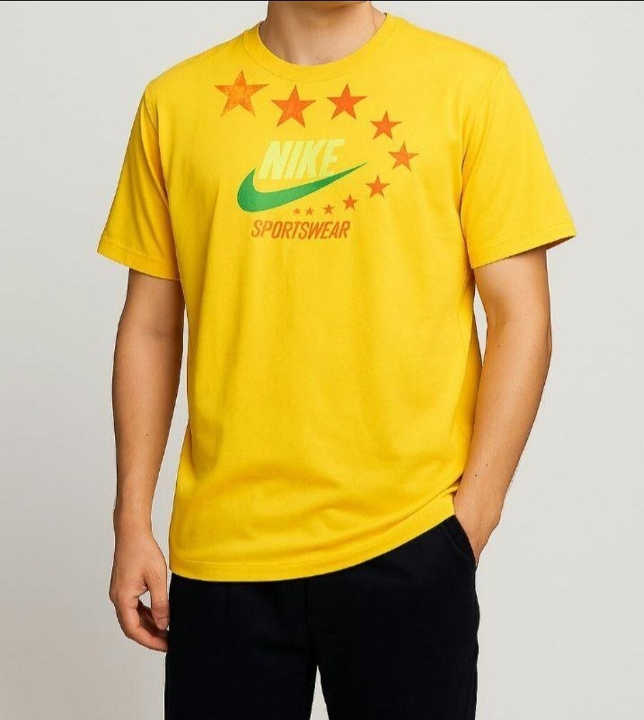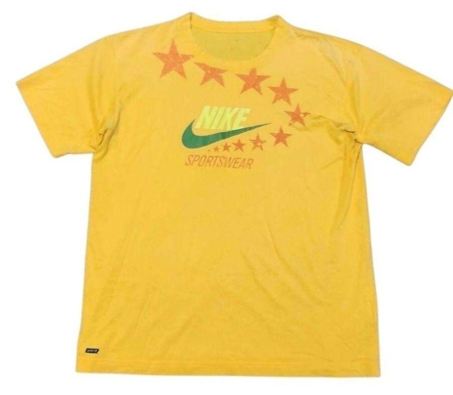 NIKE ナイキ Tシャツ DRI-FIT ドライフィット 半袖 スポーツ ストリート 星柄 プリント イエロー 黄色 Mサイズ メンズ レディース ユニセックス カジュアル ジム ランニング 古着
