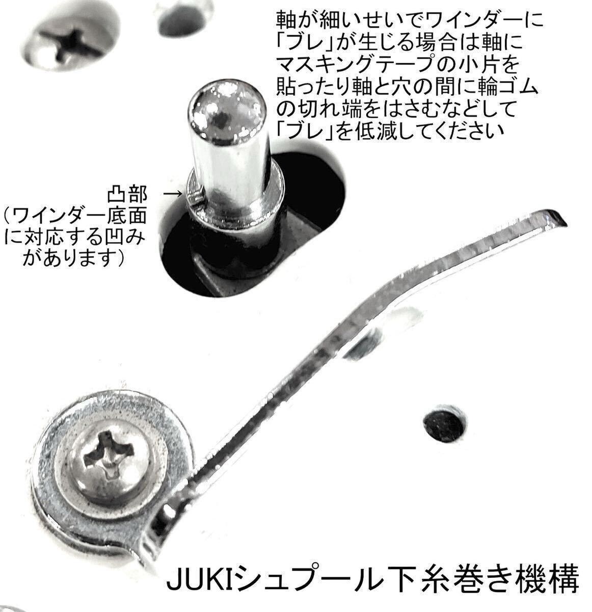 ○ミシンに取り付け時には下糸巻き機構の軸についているバネを本商品の穴の中の凹部(本商品基部表面の印の裏にあります)にカッチと音がするように合わせてください
