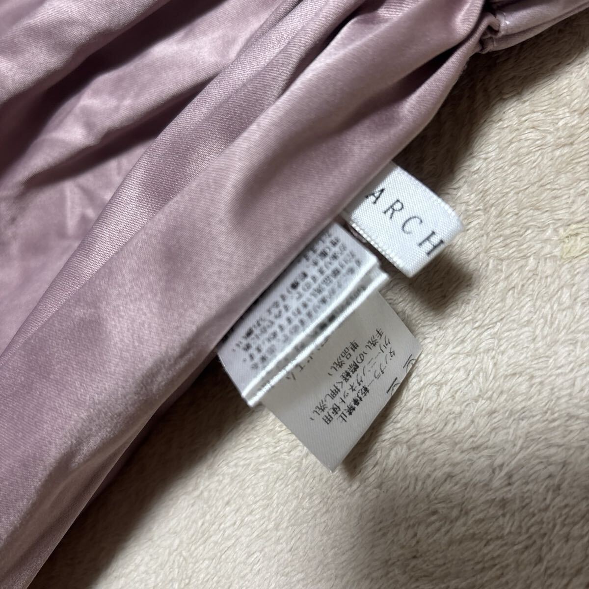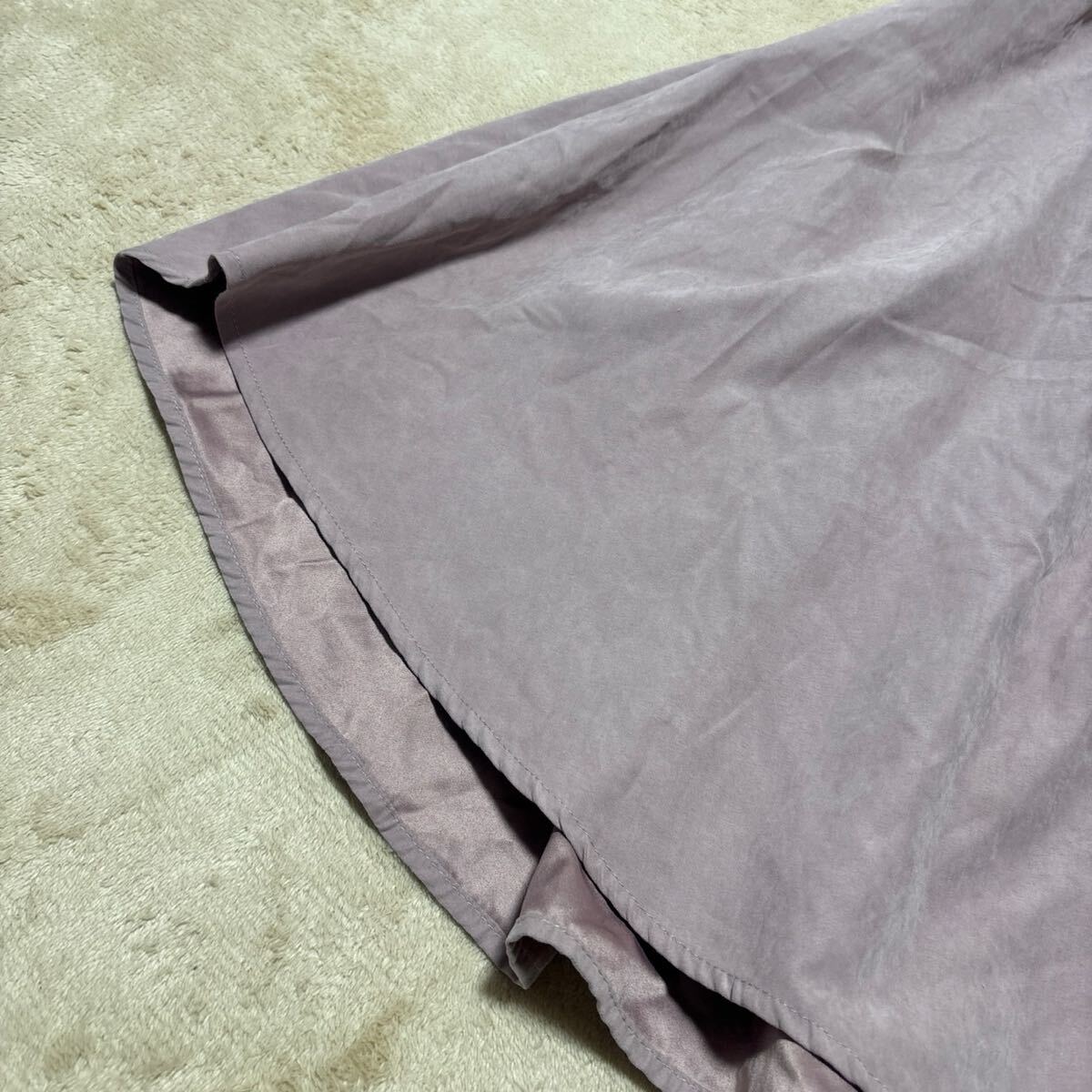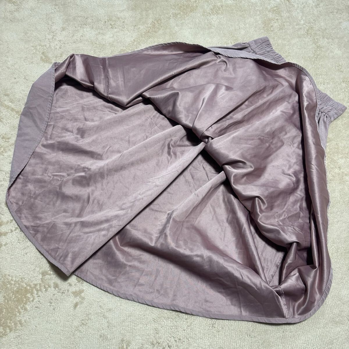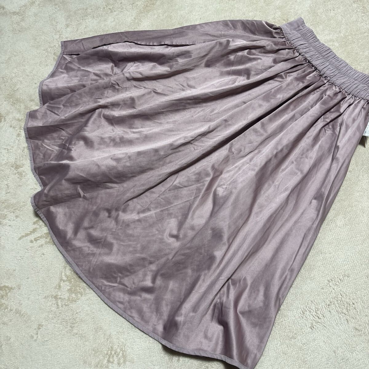 薄紫のフレアスカート、ゴムウエストで快適な着心地。