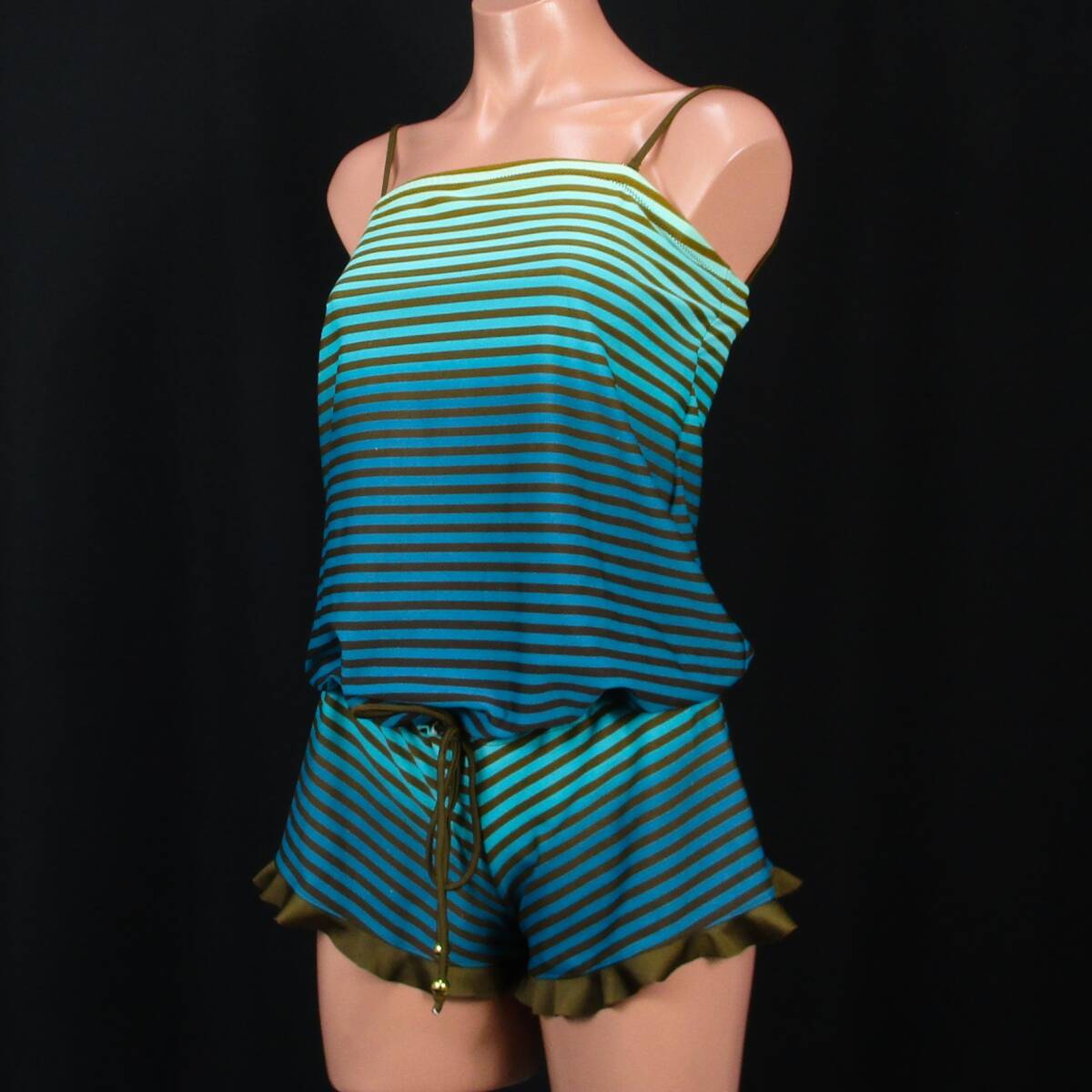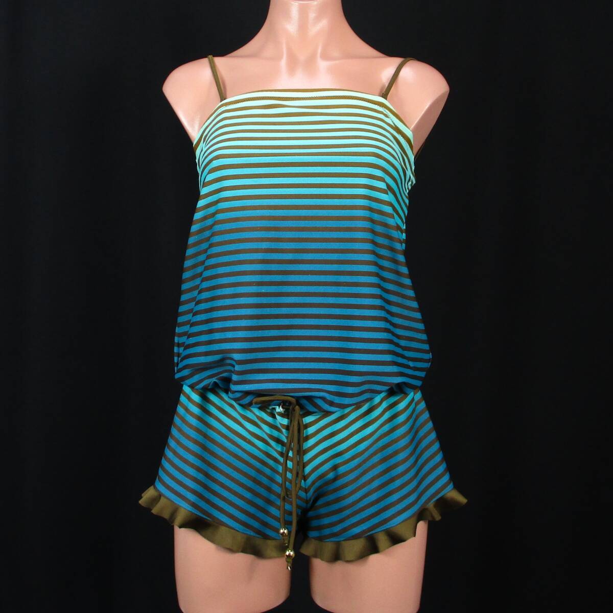 E8989★オールインワン 水着 ボーダー キラキラ ラメ レディース 7S グリーン系 グラデーション かわいい 水泳 スイム プール ビーチ 海