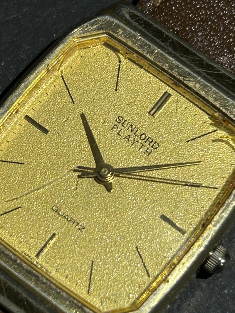 | SUNLORD PLAYTH 腕時計の出品です。 動作はしていませんのでジャンク品としての出品です。 経年による傷やくすみなどがありますのでご理解の上、ご検討ください。 状態など写真でご確認の上、ご検討ください。 基本的には used品の出品になります。 本文の記載事項があっても 現物優先とさせていただきます。 予めご了承下さいませ。 動作確認済みの物でも、時間の経過後の動作の保証はできません。 その他不明な点がございましたら、当方がわかる範囲にてお答えします。 | |||