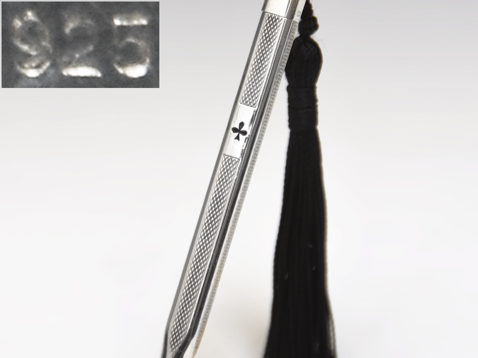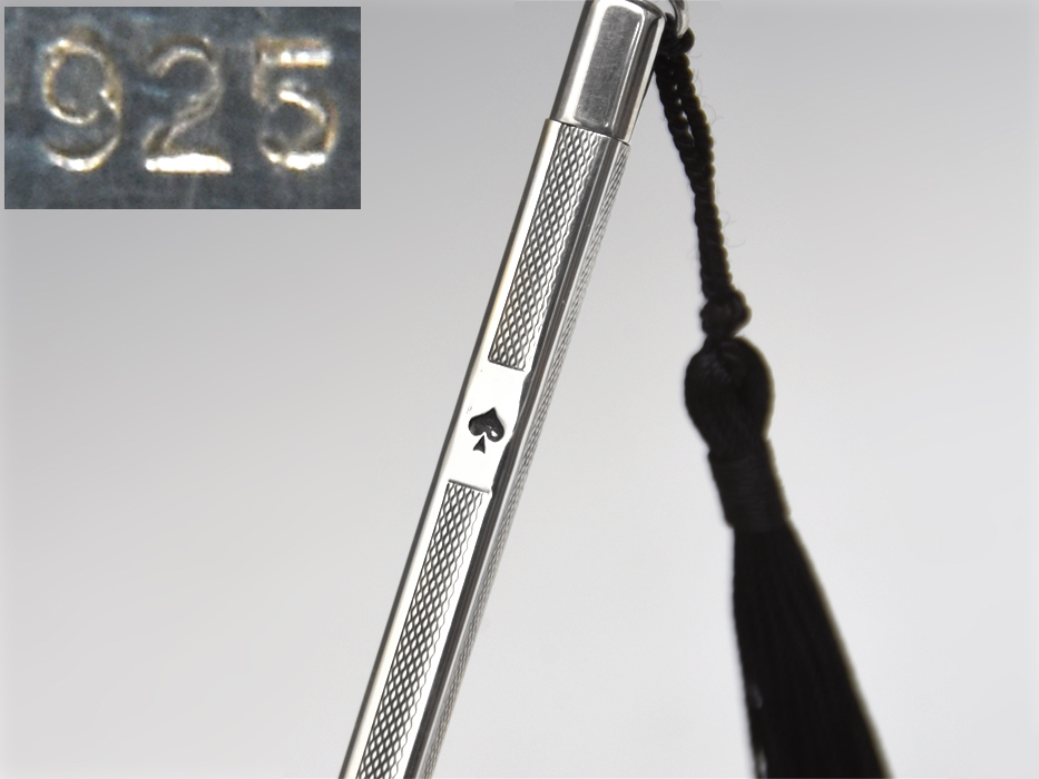 英国 銀製 SILVER925 ブリッジペンシル 4本 セット 専用ケース 繰り出し式 鉛筆 金属工芸 純銀 トランプマーク |