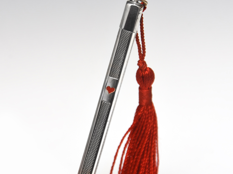 銀製 SILVER925 ブリッジペンシル 4本 セットです。 1930年代にイギリスでカードゲームをする際のスコア記入用として作られた鉛筆です。 それぞれトランプマークがデザインされており、キャップ部分を回すと鉛筆芯が繰り出します。 キャップを外すと替え芯が3~4本入っております。 4本中3本に「925」の刻印あり。 多少のスレはございますが、目立ったダメージなくコンディション良好です。 ※撮影の際に生じた写り込みなどがございます。 ご理解の程よろしくお願い致します。 |