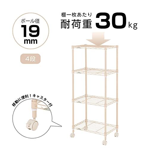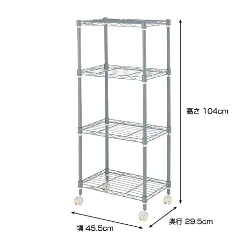 ドウシシャ ルミナス カラーラック グレー 4段 幅45 スリム オシャレでかわいい スチールラック 棚 収納 全体耐荷重120kg キャスター