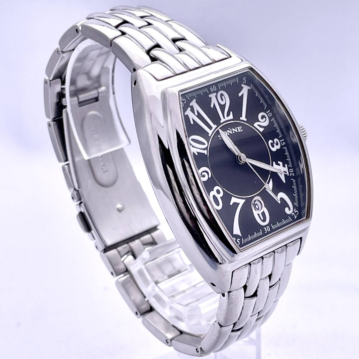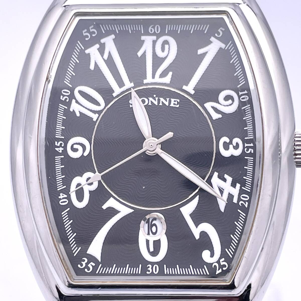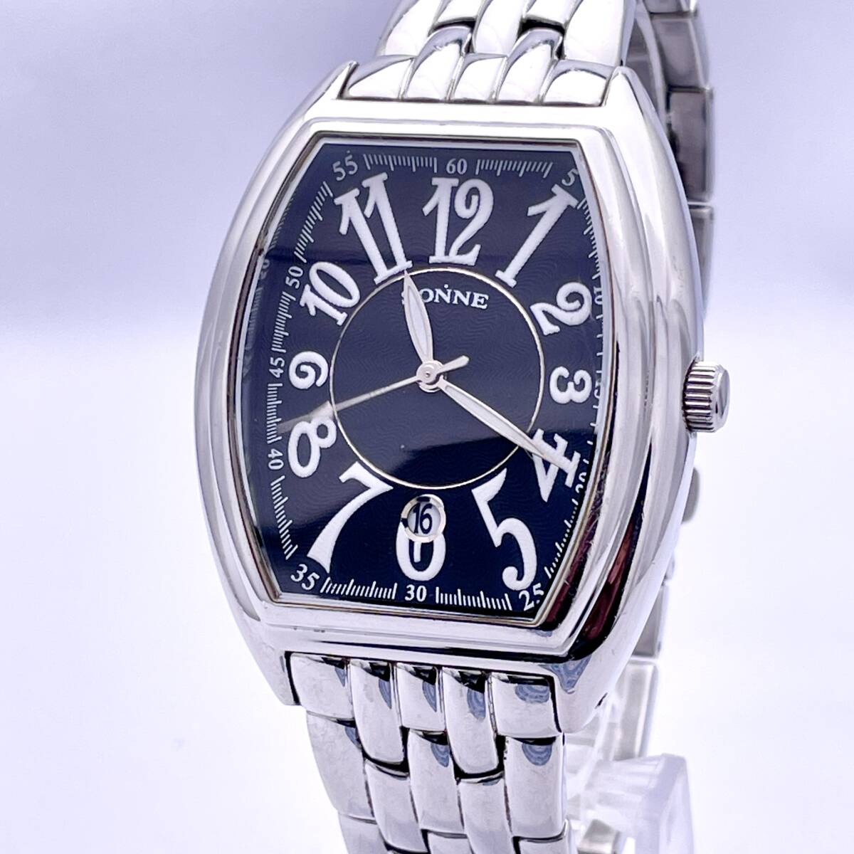 SONNE ゾンネ TONNEAUXX 腕時計 メンズ ウォッチ クォーツ quartz デイト ブラックフェイス 銀 シルバー P4559