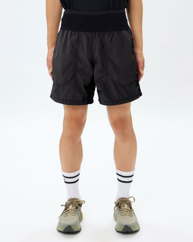 メイン素材はリサイクルナイロンを使用したナチュラルな風合いの布帛生地。ポリプロピレンを配した肌面の生地は、肌離れもよくドライ感が持続します。やや幅広に仕上げた裾幅と普段着として着用しやすい股下に仕上げています。ウエスト部はドライタッチなトリコット素材を採用し、前と後ろに合計6つのストレッチメッシュポケットを配置。スマートフォンや防寒用のジャケットなどが収納でき、パックを背負う必要がないシチュエーションで重宝します。