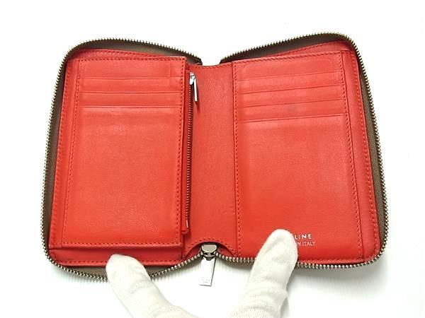 1円 ■美品■ CELINE セリーヌ ミディアム ジップアラウンド レザー ラウンドファスナー 財布 ウォレット ベージュ系 FM9981