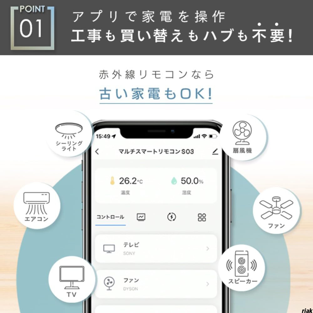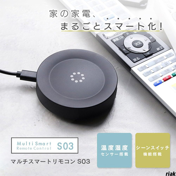 家中の赤外線家電をまとめて管理できるスマートリモコン S03は、エアコン・照明・テレビ・加湿器などをスマホや音声で簡単に操作できます。
