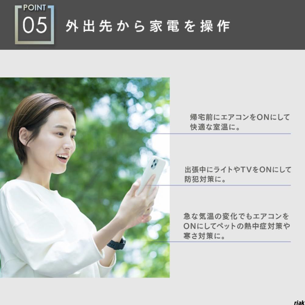 温度・湿度センサーを内蔵しており、設定した条件に応じて家電を自動で制御。快適な室内環境を保ちながら、生活をより便利にします。