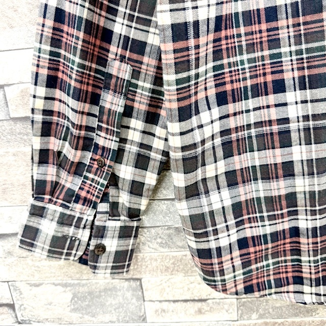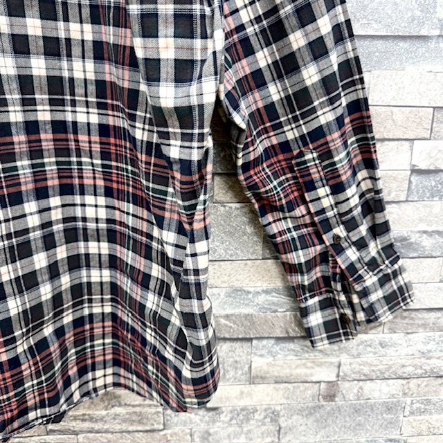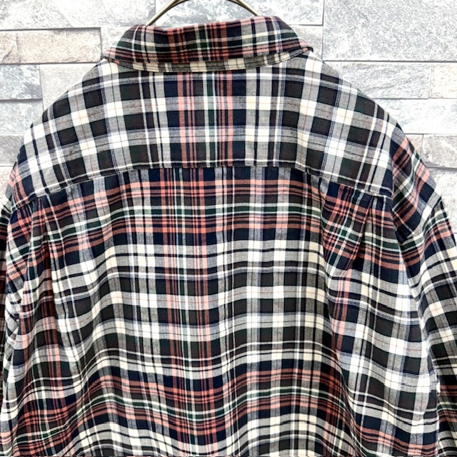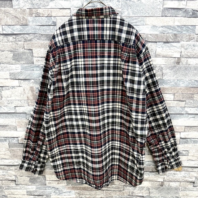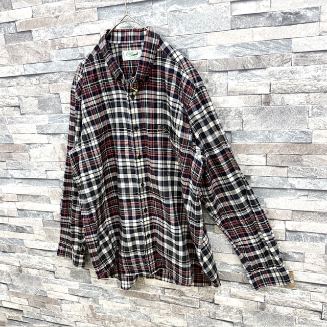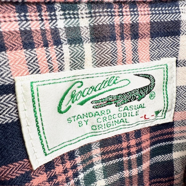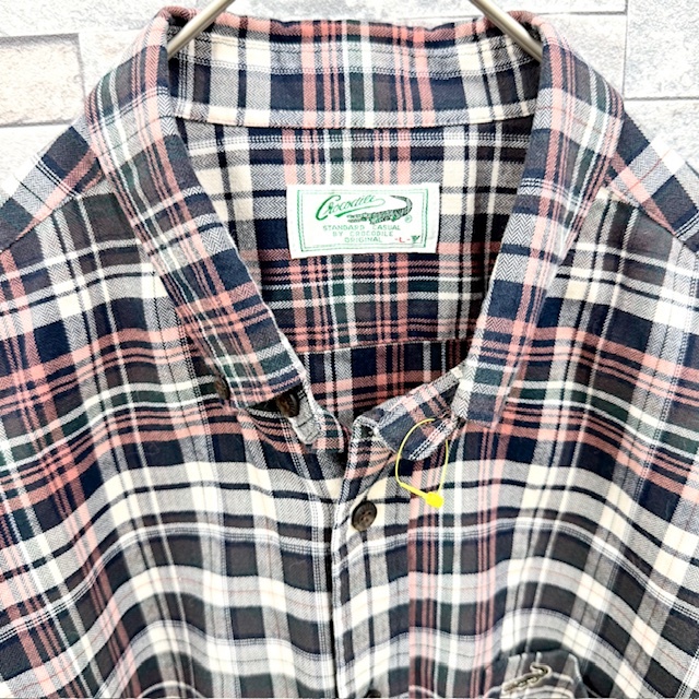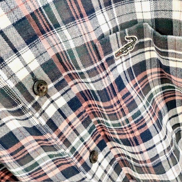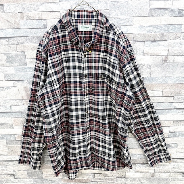 Crocodile クロコダイル マルチカラー長袖チェックシャツ ボタンダウンロゴワッペンシャツ ネイビー ホワイト レッド L