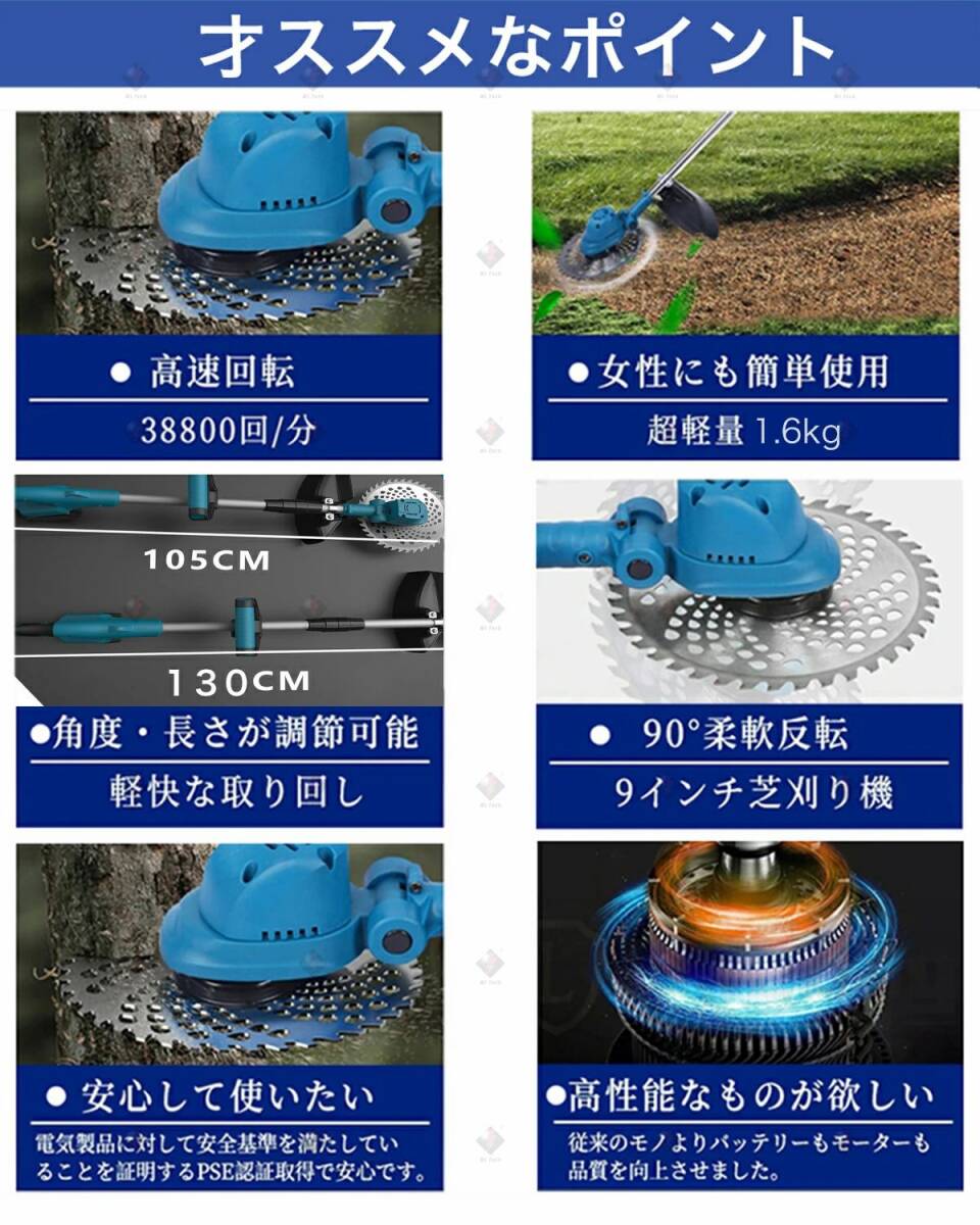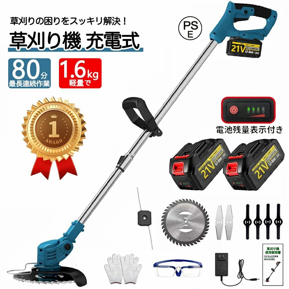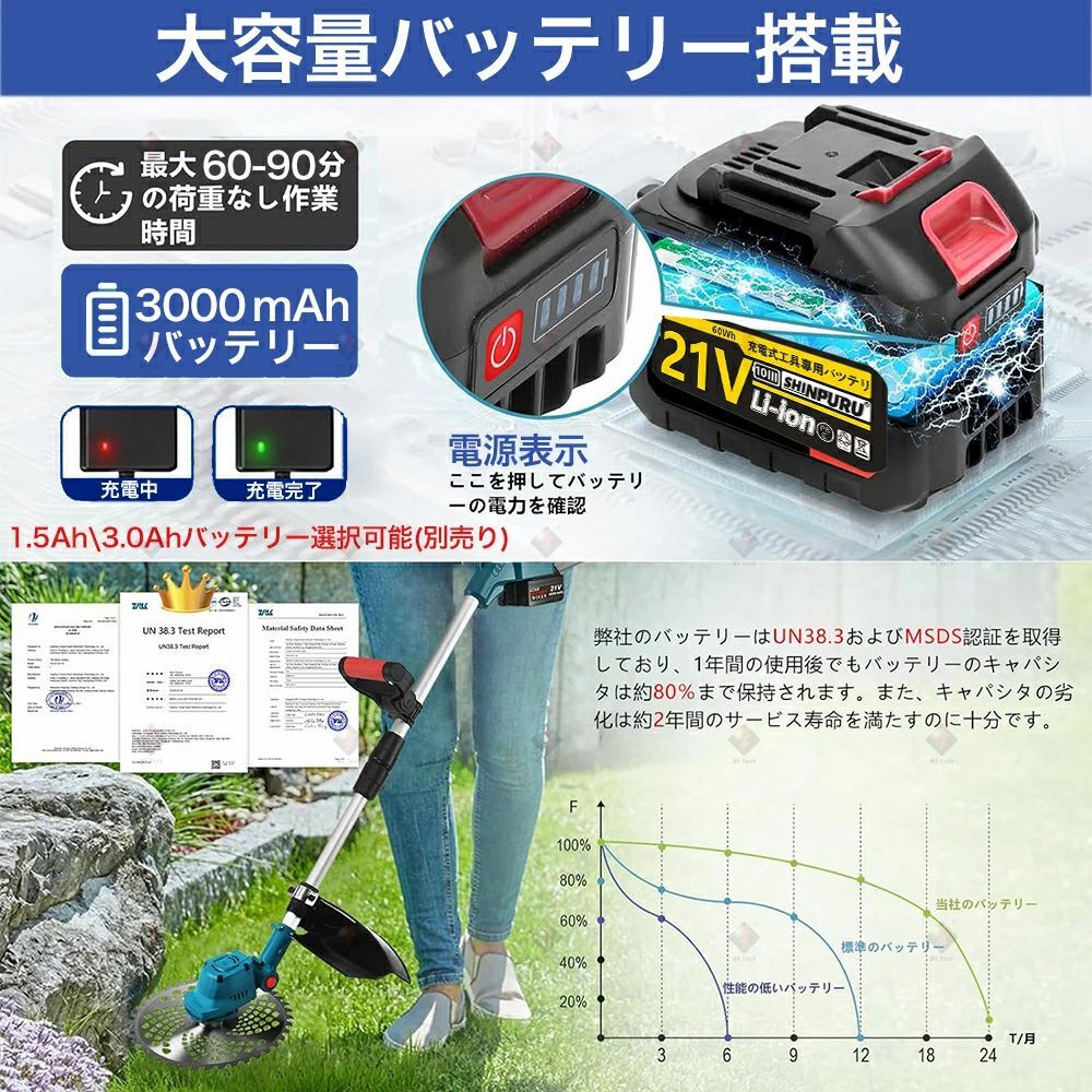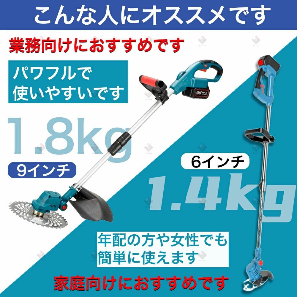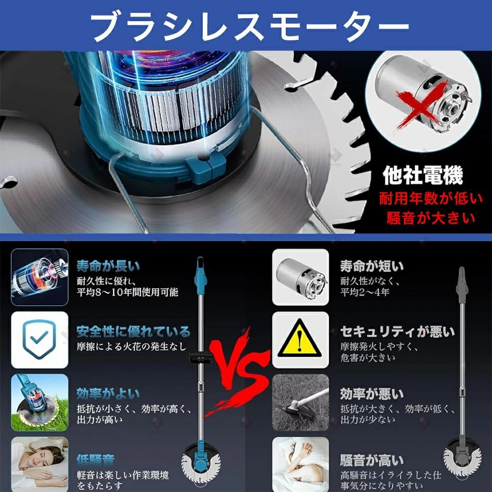草刈り機 充電式 コードレス 電動 草刈機 刈払機 芝刈り機 マキタ互換 電動 芝刈機 バッテリー併用 コスパ抜群 ナイロンコード 除草 園芸