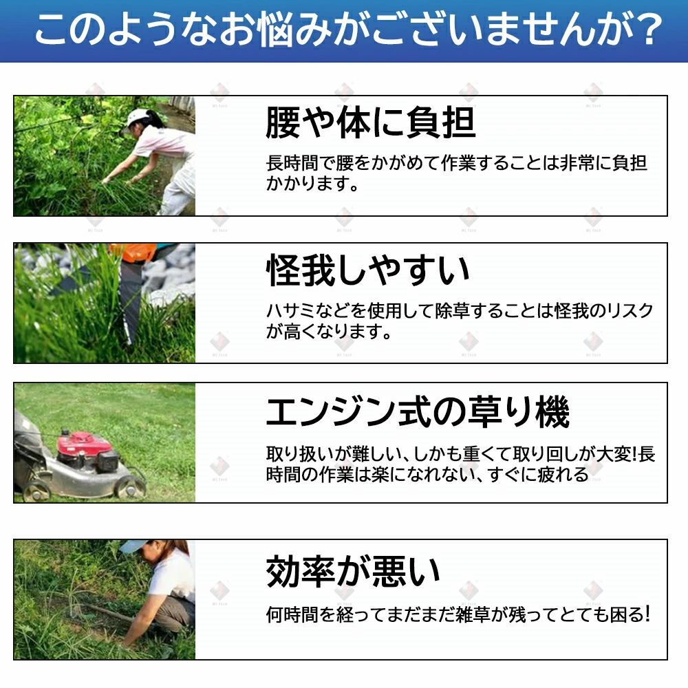 また、父の日のプレゼントとしての最適な選択肢でもあります。※ご注意:使用時間は、草や枝の太さによって異なります。また、長時間の輸送中に電力が消耗していますので、商品到着後初めてご使用になる前に、必ずー度フル充電してからご使用ください(3-4時間充電)。