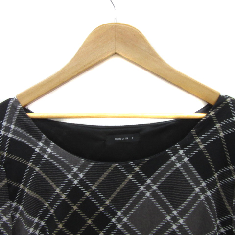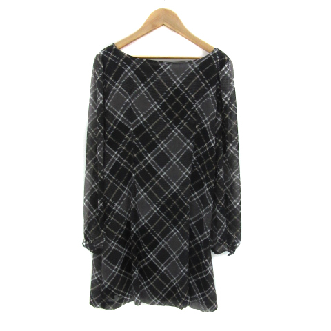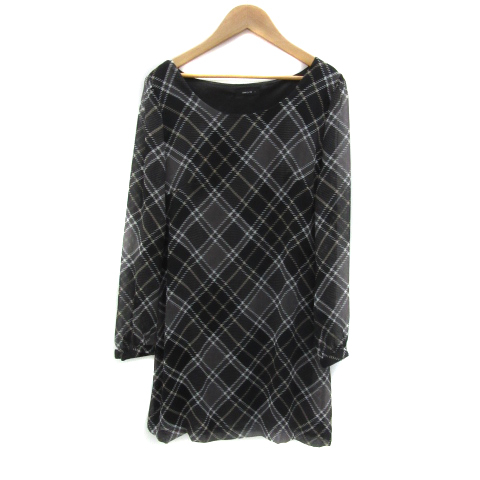 コムサイズム COMME CA ISM ワンピース ミニ丈 長袖 ラウンドネック アーガイルチェック柄 F マルチカラー 黒 ブラック レディース