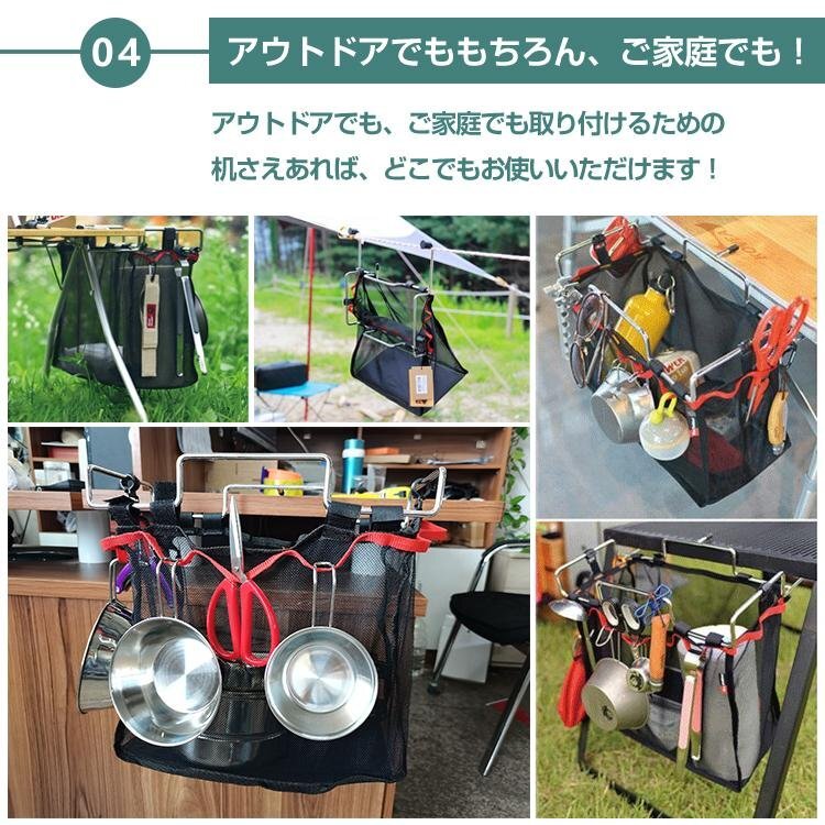 テーブルサイドラック 収納ラック 13L 大容量 メッシュバッグ付き テーブル アウトドア キャンプ テーブルホルダー サイドポケット 093