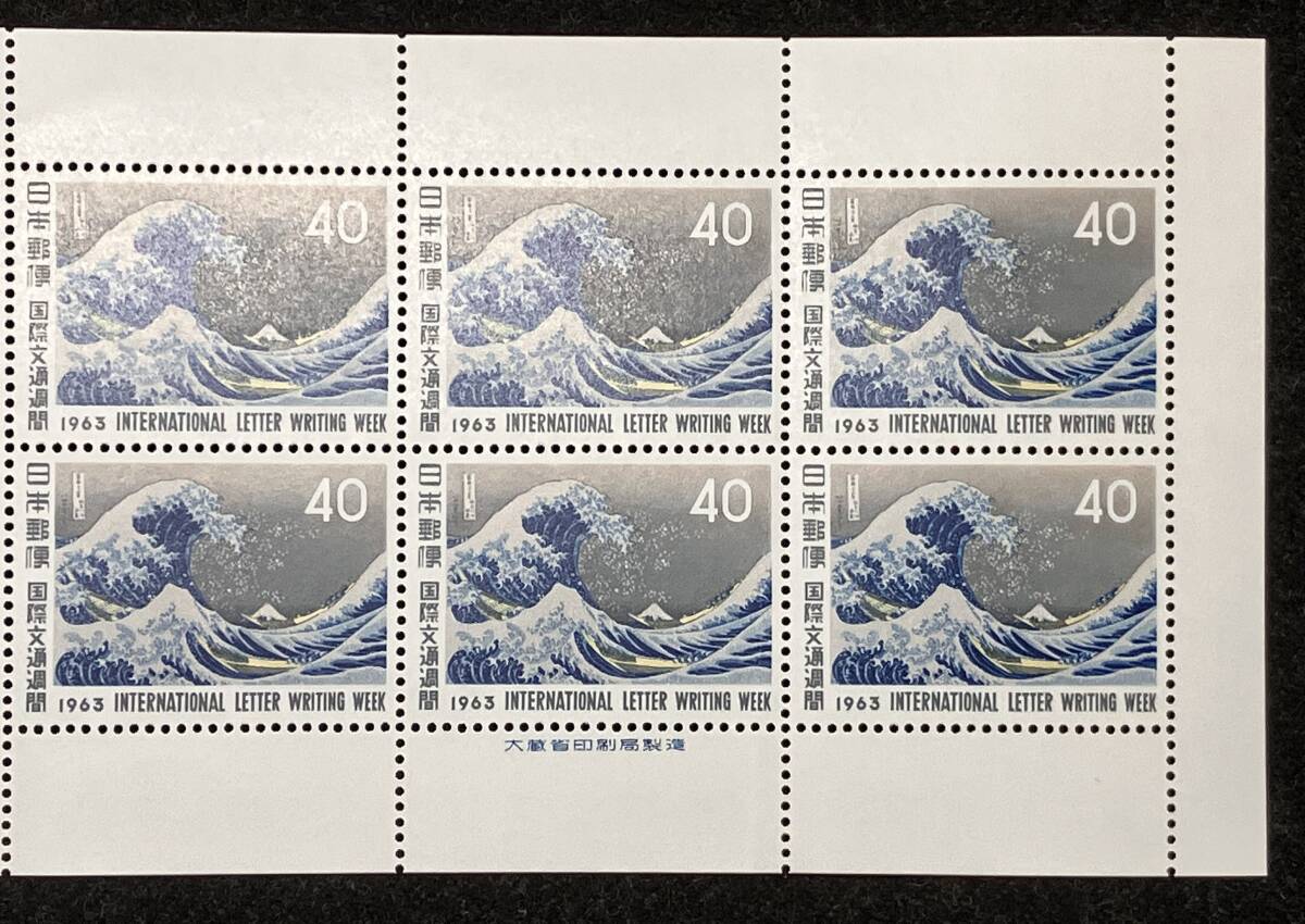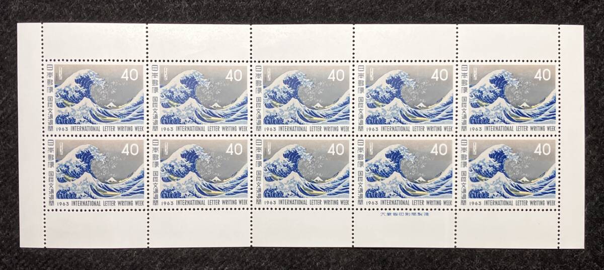 ☆国際文通 1963年 神奈川沖浪裏 40円×10枚シート 葛飾北斎 ◇美品