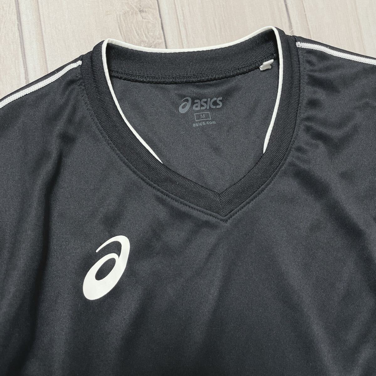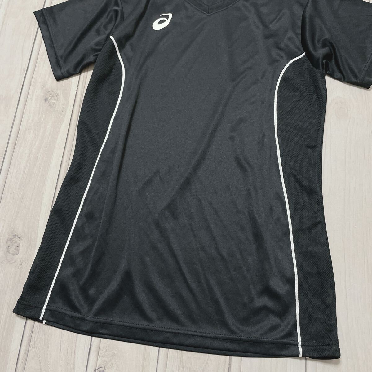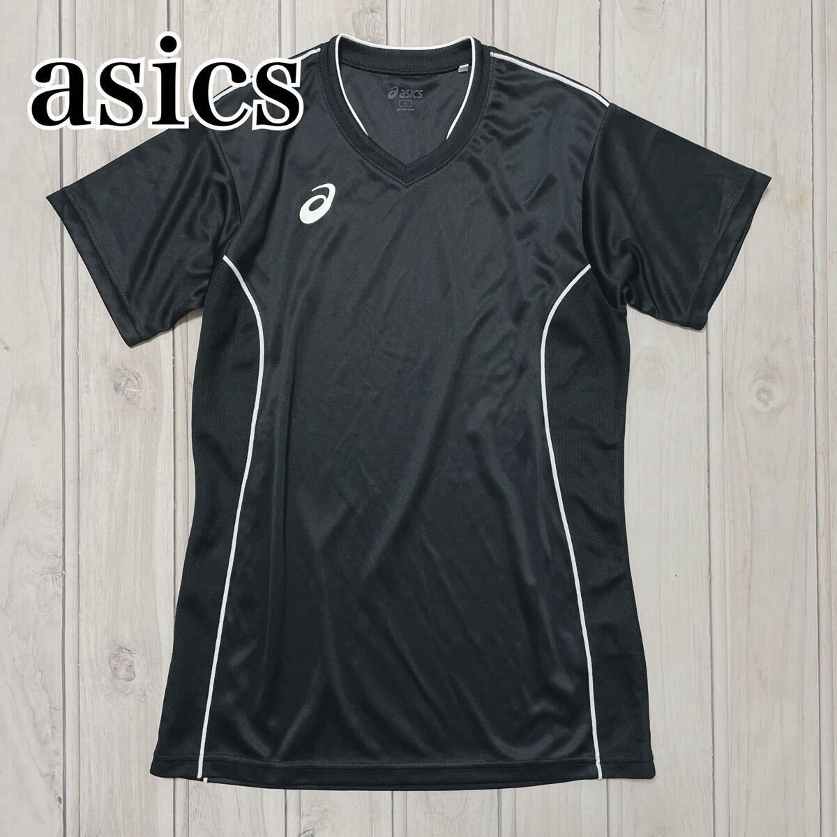 asics アシックス 半袖Tシャツ スポーツウェア レディース Mサイズ M 黒 ブラック ロゴ入り ホワイト ライン Vネック バレーボール