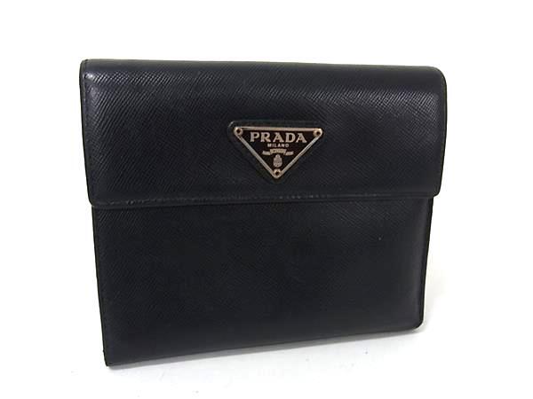 1円 PRADA プラダ サフィアーノレザー 三つ折り 財布 ウォレット 札入れ 小銭入れ カード入れ メンズ レディース ブラック系 BP4871